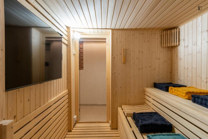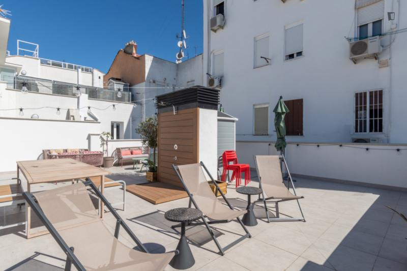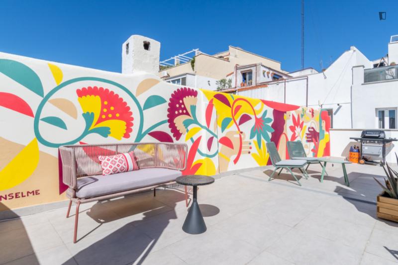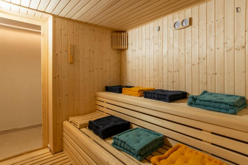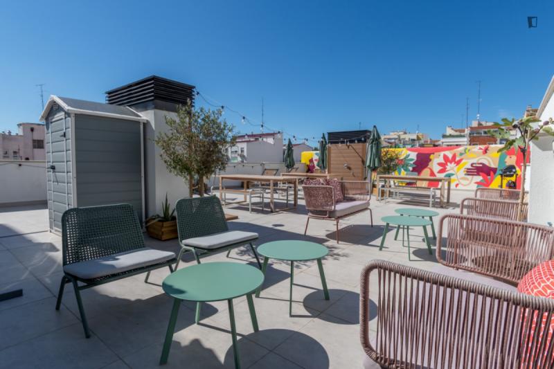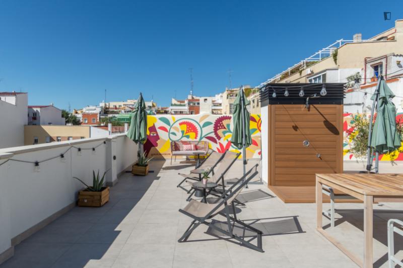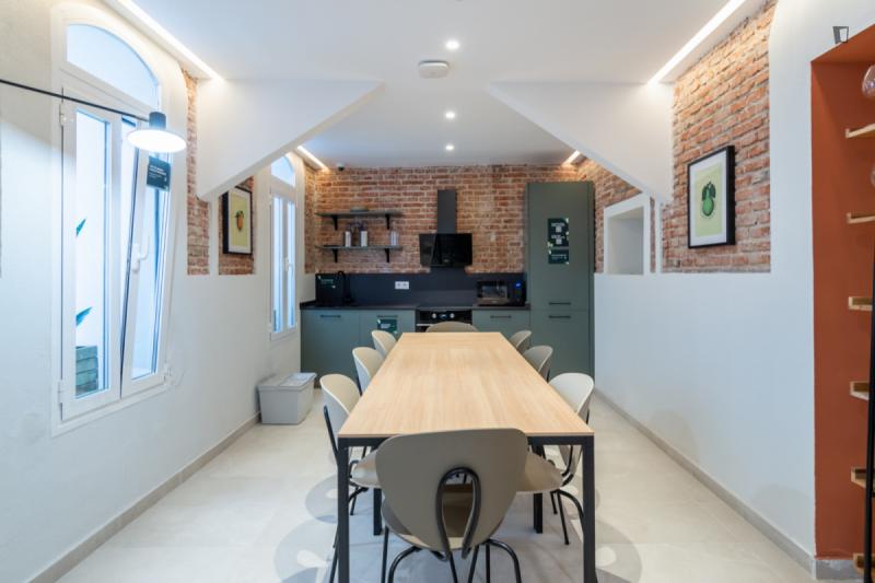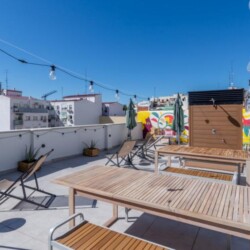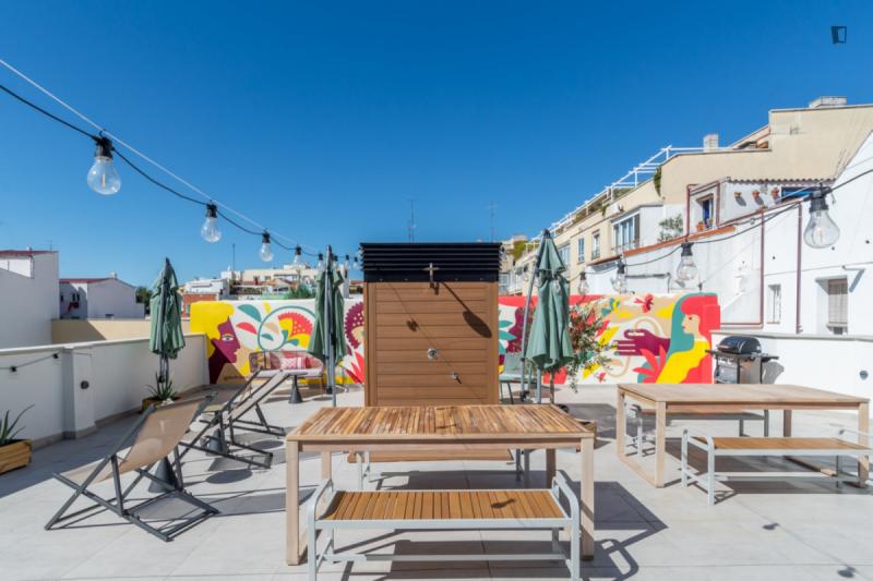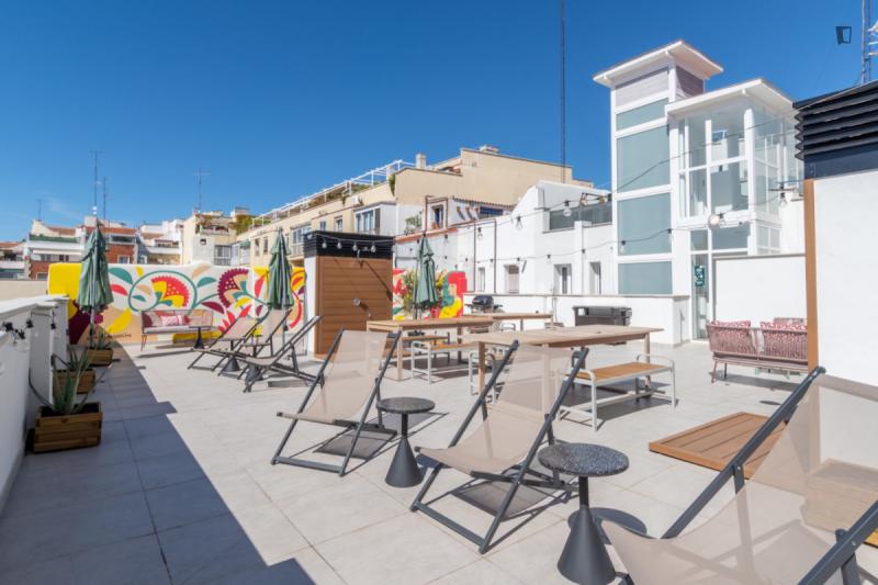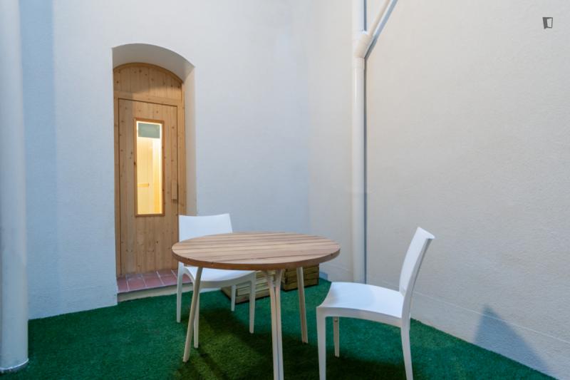 This coliving offers 57 units and boasts 370 m2 of shared spaces. Residents can enjoy a garden, a swimming pool, terraces with barbecues, a coworking area, a gym, a cinema room, a relaxation zone, an event space, and a communal kitchen. Please notice this landlord only accepts young professionals and not students. Also, the notice period to terminate your contract is 30 days, with the minimum stay of 3 months to be respected.