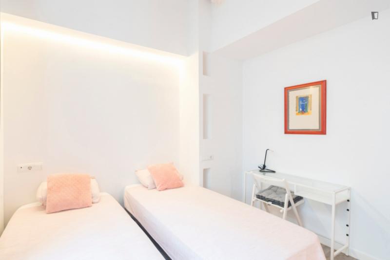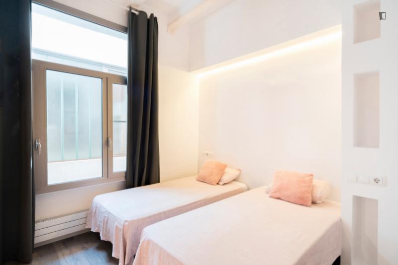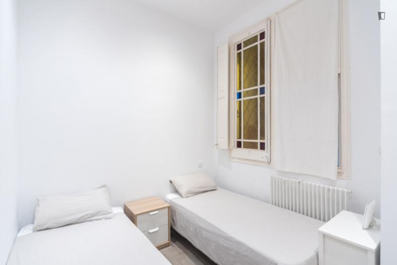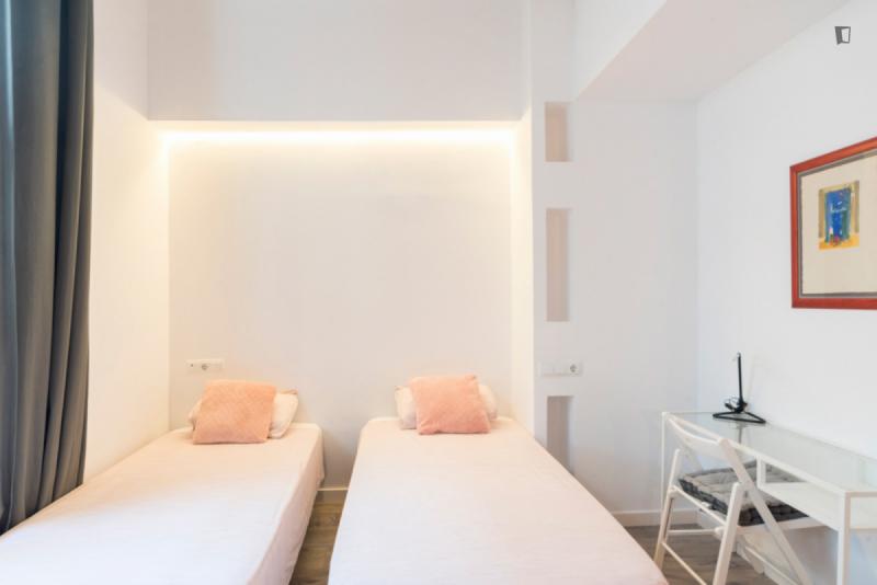 Bed in a twin bedroom close to Rocafort metro station