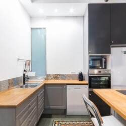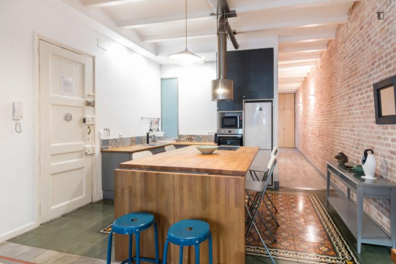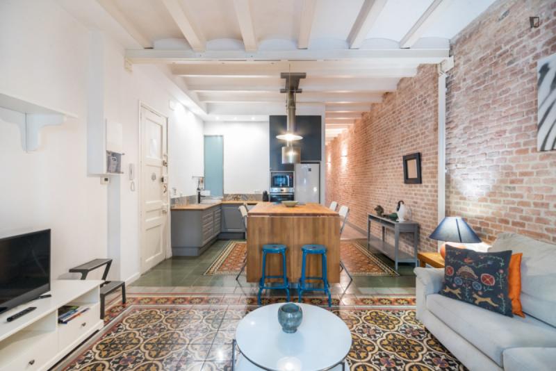 3-bedroom apartment completely renovated with high quality design and materials. It stands out for its combination of original elements such as its Catalan vault ceilings, wooden floors, brick, stone and mosaics with modern and current details. In its meters there are differentiates the day and night areas, with a spacious living room and kitchen with an island in the day area that make it a perfect space to enjoy lunches and dinners with friends and family. The night area is separated by a corridor and has 3 double bedrooms, equipped with wardrobes, a work space and two bathrooms, one of them incorporated into a bedroom suite. Fully equipped with appliances, a wide variety of kitchen utensils, high-speed WIFI, TV, and heating. The location is perfect, in the heart of the Eixample, next to Calle Enrique Granados, an area full of bars, restaurants and organic shops.