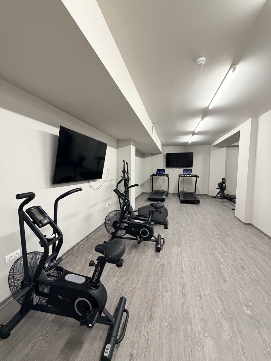 The apartment is equipped with air conditioning (heating & cooling), LED lighting, double-glazed windows, sound and thermal insulation, a security door, a built-in wardrobe and a TV.