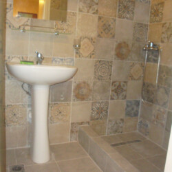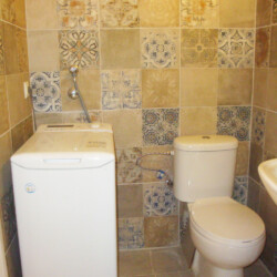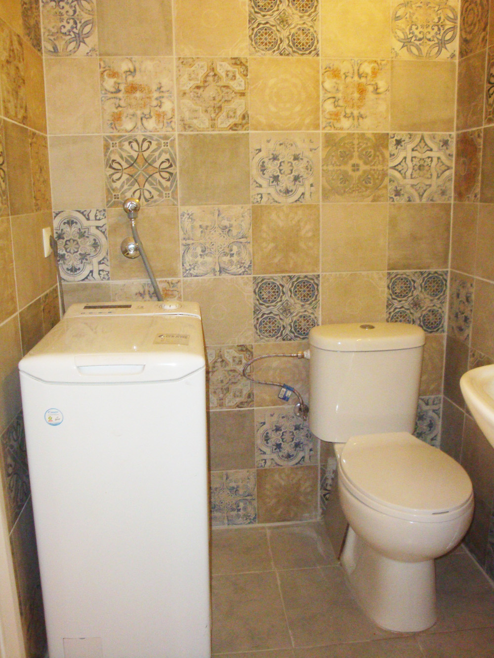 1 comfortable bathroom with excellent quality sanitary ware, shower and ventilator. There is a washing machine in the bathroom.