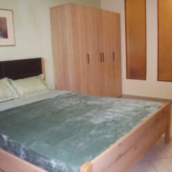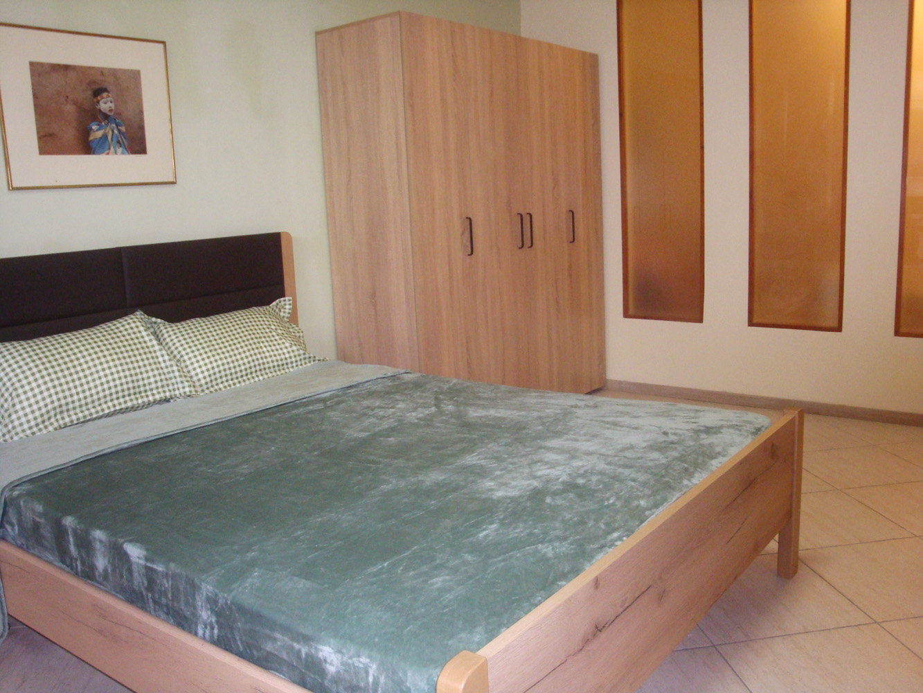 1 comfortable bedroom, a wardrobe and a double bed with a new mattress.