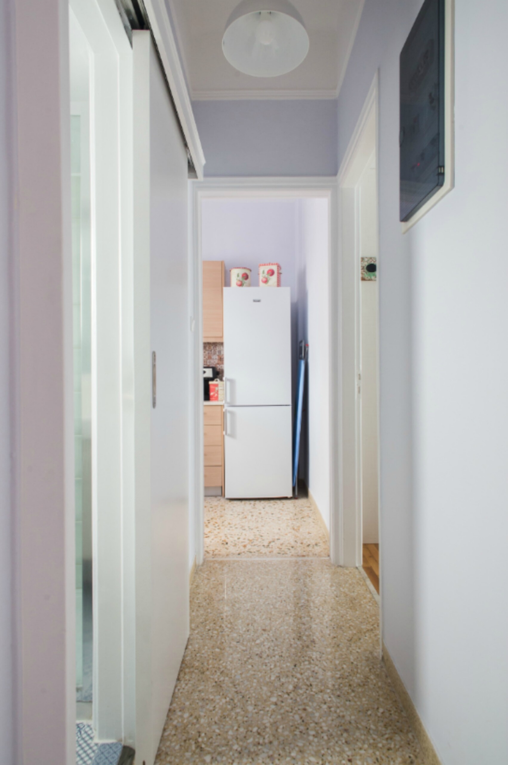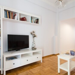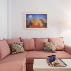 Conveniently situated just two metro stops away from the Acropolis, this apartment occupies the third and final floor of the building. Offering an ideal retreat from the tourist-centric areas of Plaka and Acropolis, it provides an authentic glimpse into local life. Despite its tranquil setting, major Athens attractions are easily accessible, with most within a 15-minute walk or a quick metro ride from Neos Kosmos station, aptly translating to “New World”.