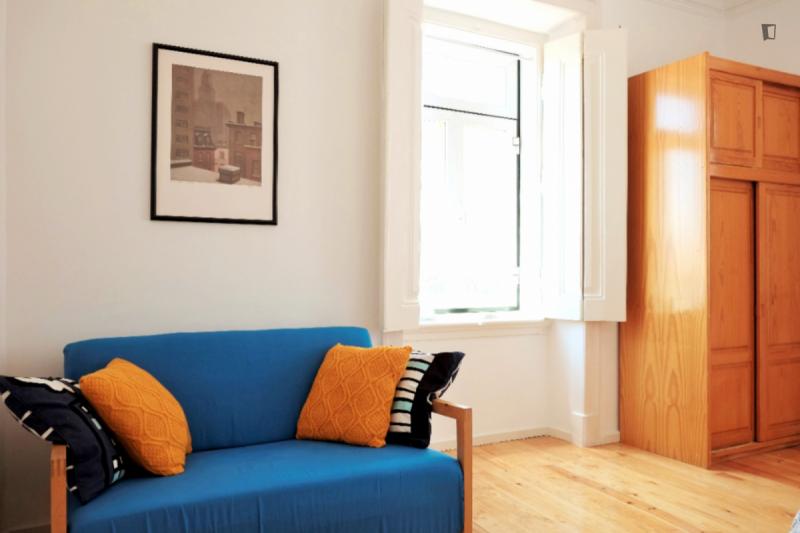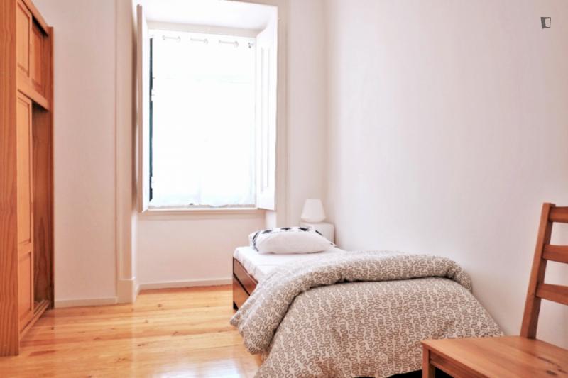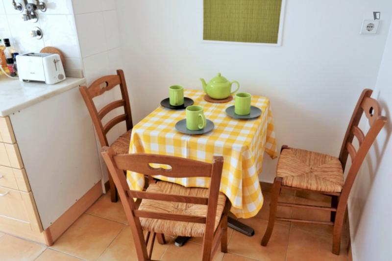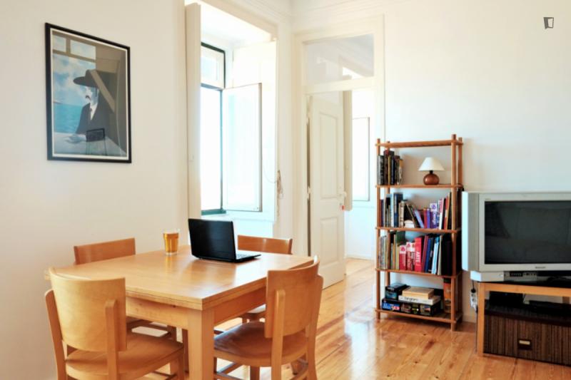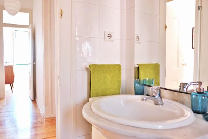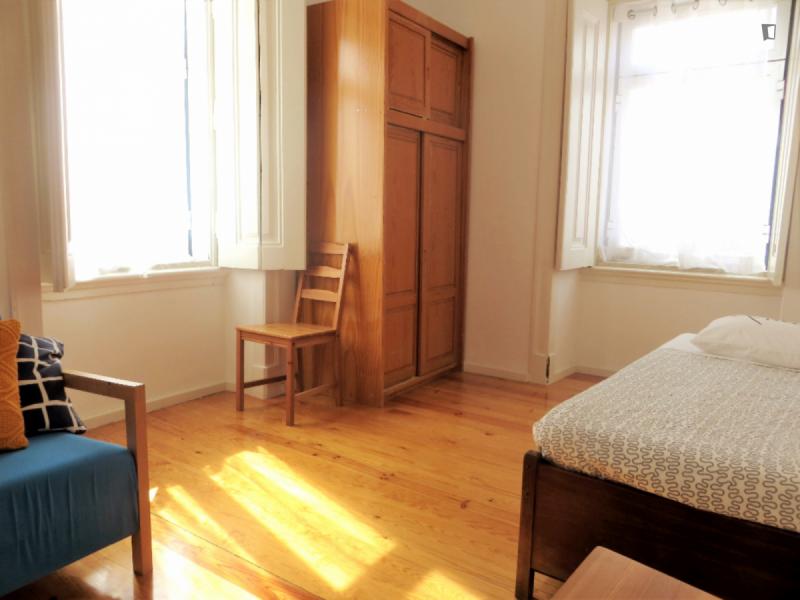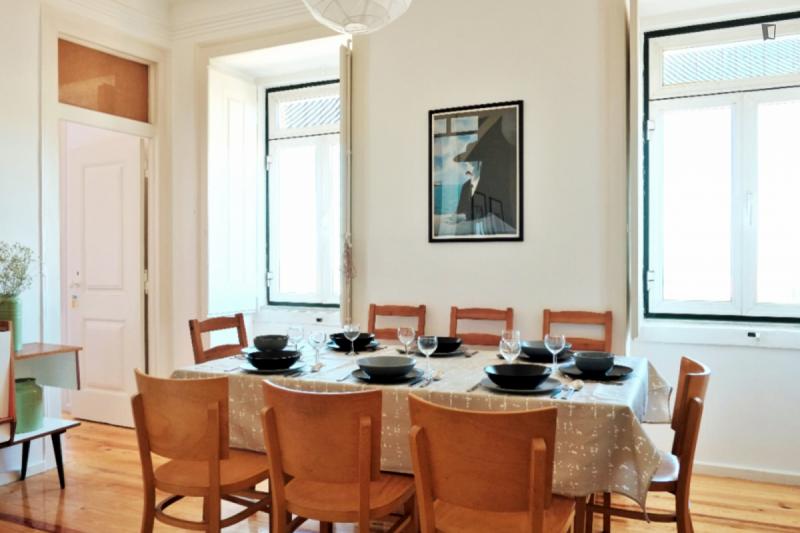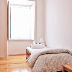 Apartment in the heart of Lisbon, between Príncipe Real, Chiado and Bairro Alto. 4 bedrooms on a 4th floor and a stunning view. The street is quiet but only 2 minutes from the best nightlife in the city. The apartment is on the 4th floor with no elevator, so you’re guaranteed your work. The 4 bedrooms allow you to share the apartment while still having privacy for each one, but a large sofa and table in the living room allow good moments of sharing and hanging out together. The bathroom and kitchen are small but fully functional, with everything you need, including all appliances, such as a washing machine, dishwasher, oven, microwave, and a Nespresso coffee machine. We also provide all sheets and towels. Any questions we are happy to help, now and during your time in Lisbon. See you soon!