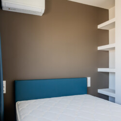 The studio includes air conditioning (heating & cooling), a solar water heater, LED lighting, energy-efficient double-glazed windows, blackout curtains, sound and thermal insulation, a fire-resistant security door and a 43β TV.