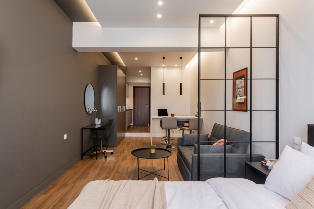 Welcome to a modern and comfortable studio designed for mid-term living.