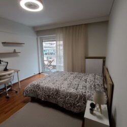 A recently renovated four-bedroom apartment available for rent either as a whole or by individual room. The apartment consists of 4 bedrooms, a fully equipped kitchen, 1 shared bathroom, 1 private bathroom, and a shared balcony.