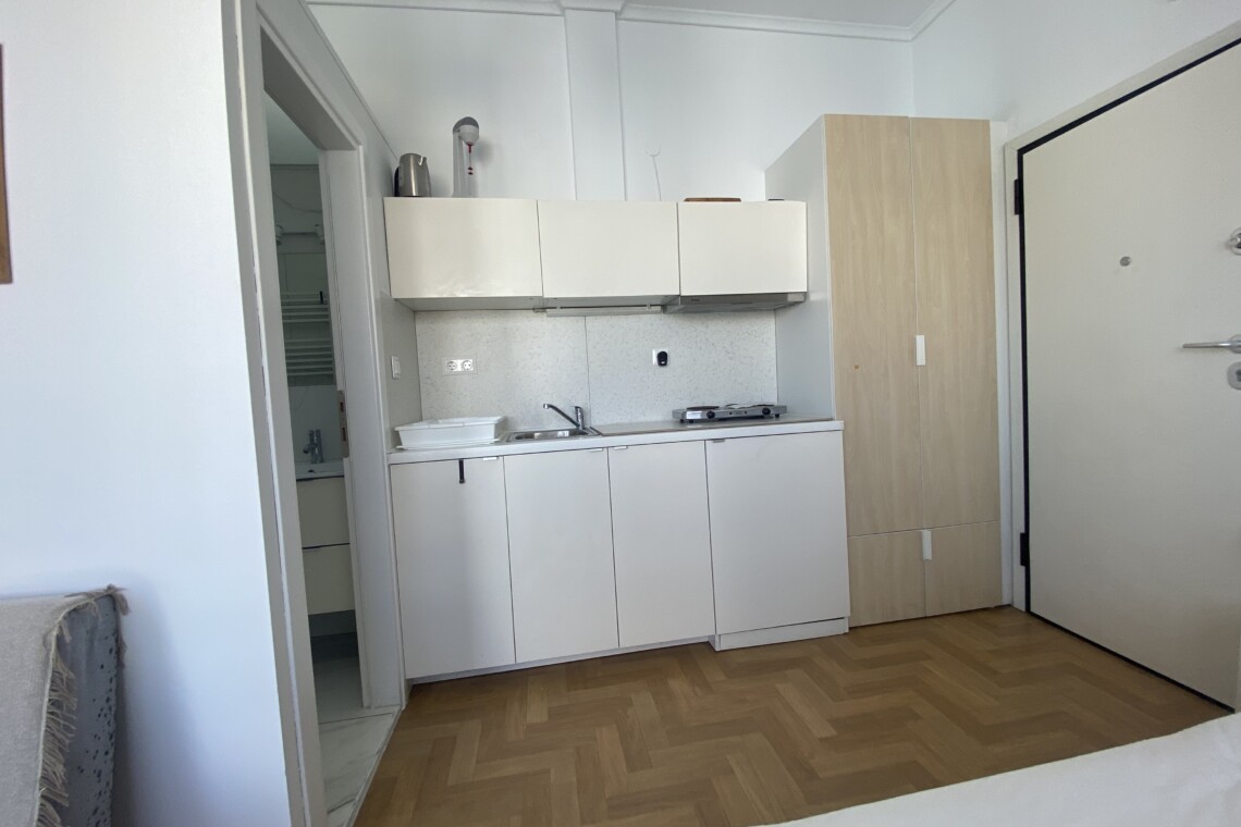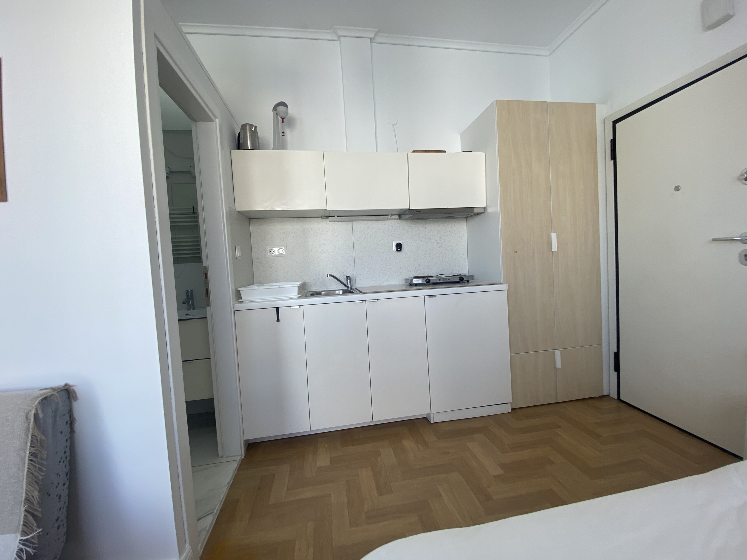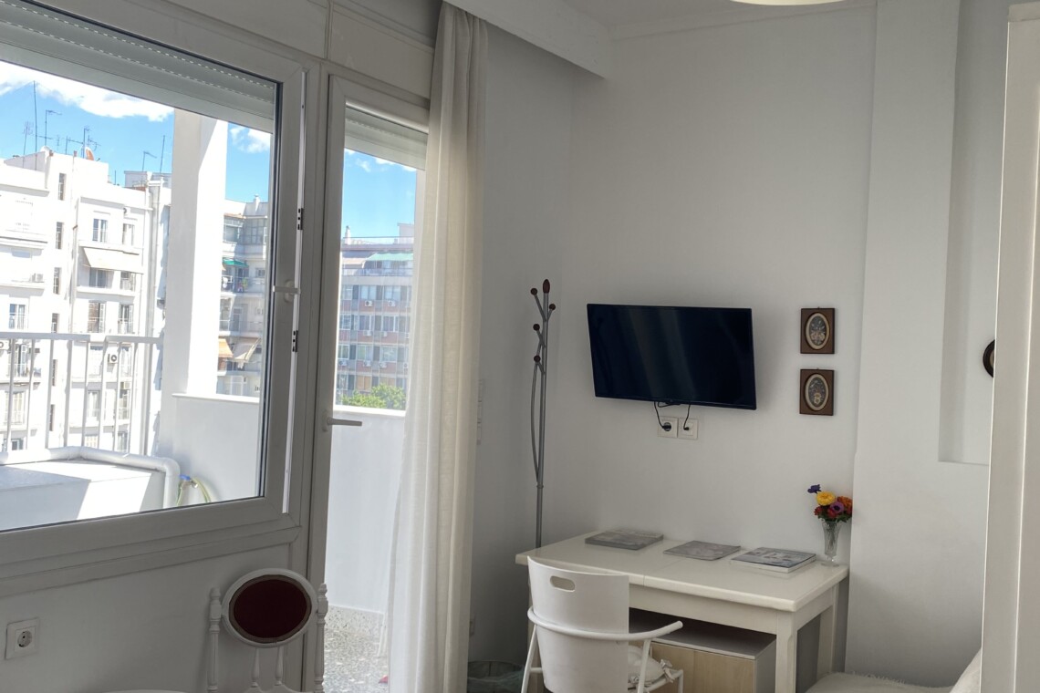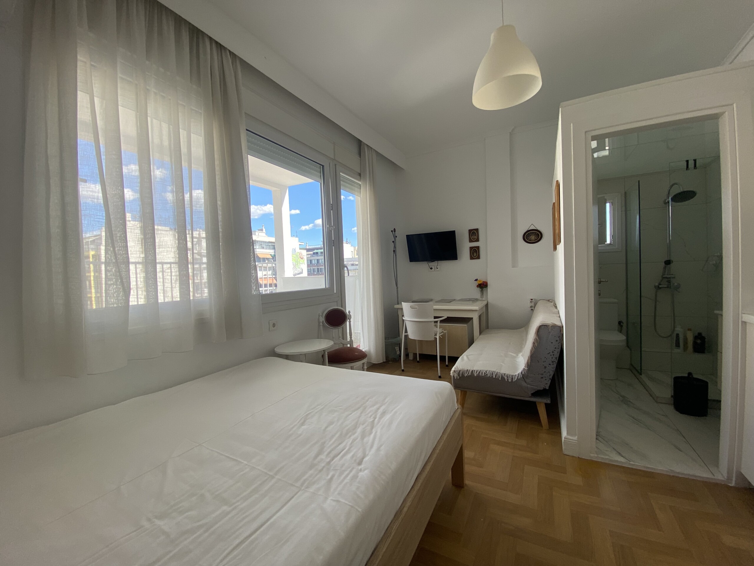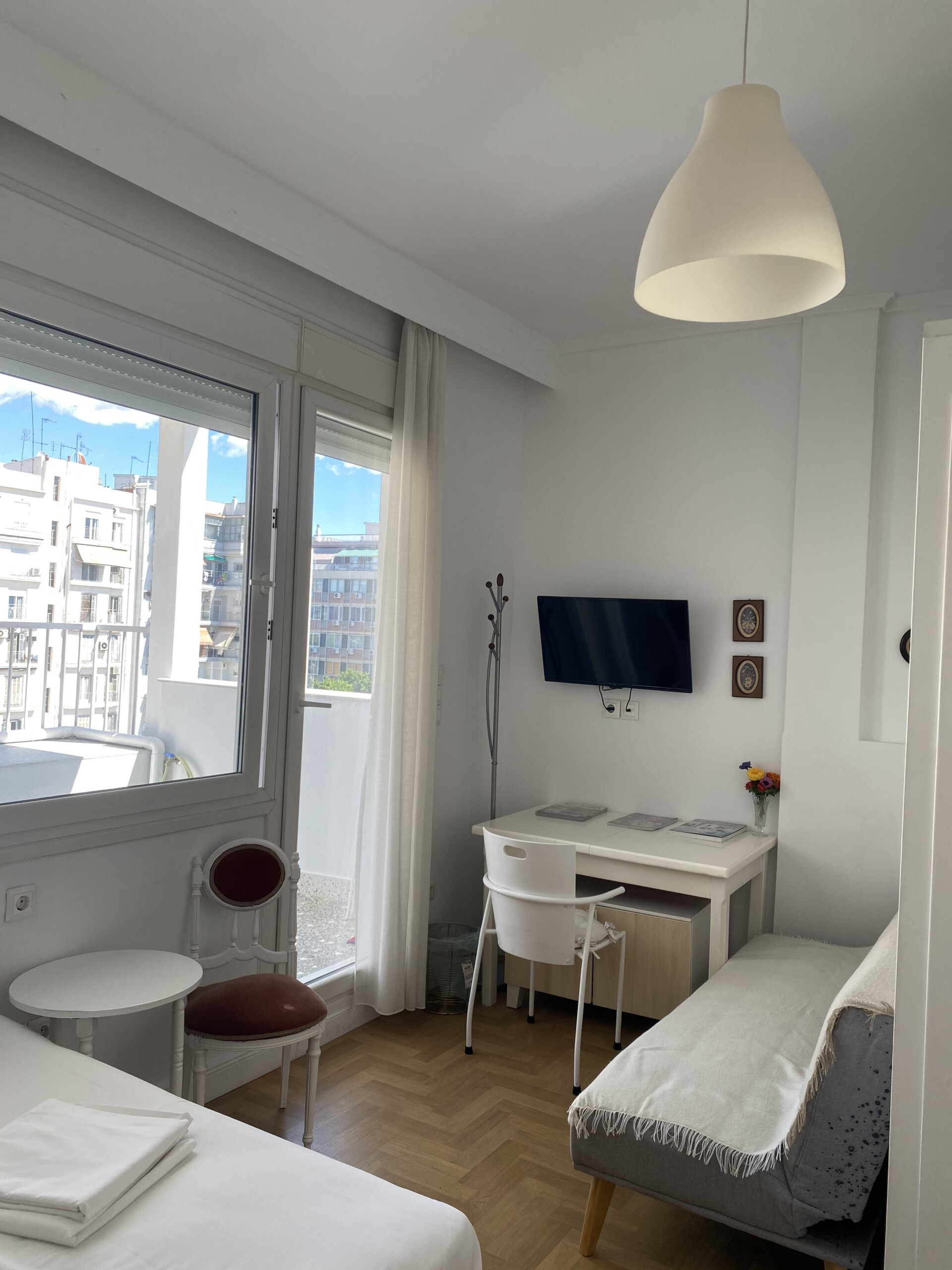 This cozy studio is located on the 5th floor of a charming historic building, right in the city’s commercial centre on Aristotelous Square. Everything you need is just steps away – supermarkets, bakeries, restaurants, shops, and the main bus station (all within 50m).