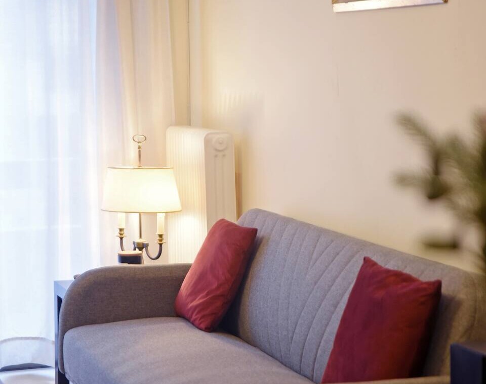 More specifically, the two bedrooms each feature large double beds. In the living room, the sofa converts into a single bed, therefore the apartment can accommodate up to 5 guests.