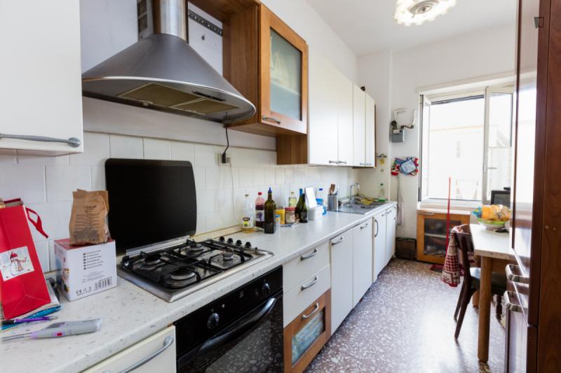 The deposit is two monthly payments for reservations of less than one year and three monthly payments for one-year reservations. An Italian tax code is required to register the contract. Sappiamo che cercare di trovare il posto ideale è difficile. Tuttavia, quando dai un’occhiata a questo posto, saprai che questo appartamento è quello che stavi cercando. A pochi minuti dalla bellissima Villa Doria Pamphilj – questo moderno e accattivante appartamento è tutto per aspetto, comfort e posizione. Inoltre, ci sono molti negozi nelle vicinanze quindi non preoccuparti di dove trovare i tuoi beni quotidiani. L’appartamento è composto da due camere da letto, una cucina e un bagno in comune.