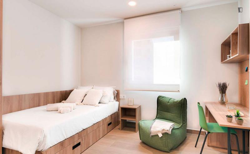 Bed in a twin bedroom close to Rocafort metro station
