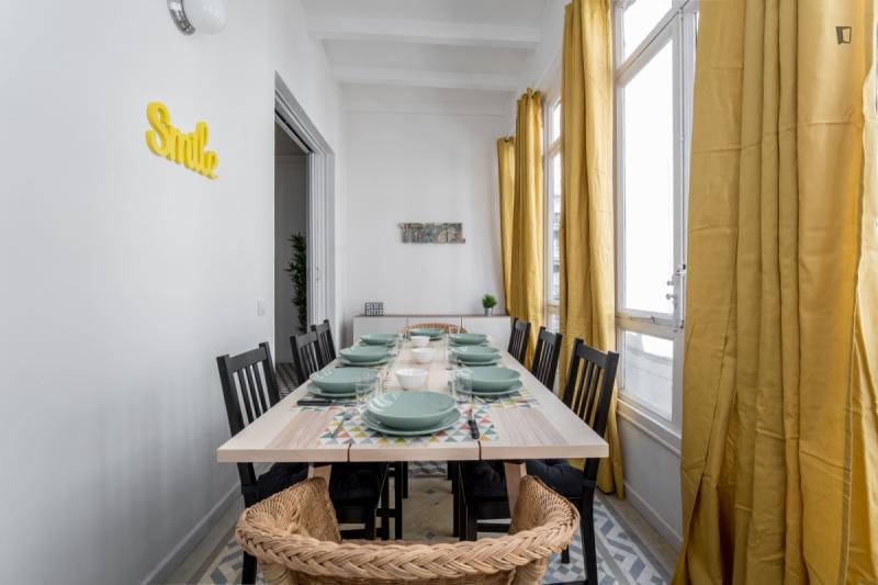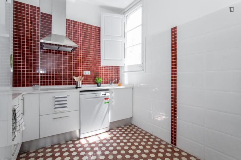Te diriges a Barcelona y todavía estás buscando el lugar perfecto Puede que ser que etsa cama en una habitación sea adecuada para usted, aquí en el barrio La Nova Esquerra de l’Eixample Eixample. Tiene una excelente conexión de transporte público, así como muchos supermercados, cafeterías y restaurantes, este podría ser su nuevo hogar. El apartamento se compone de 9 dormitorios, 2 baños compartidos, una hermosa sala de estar y una cocina bien amueblada. Si te gusta esta descripción, haz tu reserva rápidamente! IMPORTANT: Admin fee sera cobrada por persona!