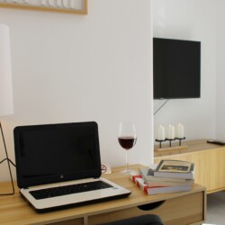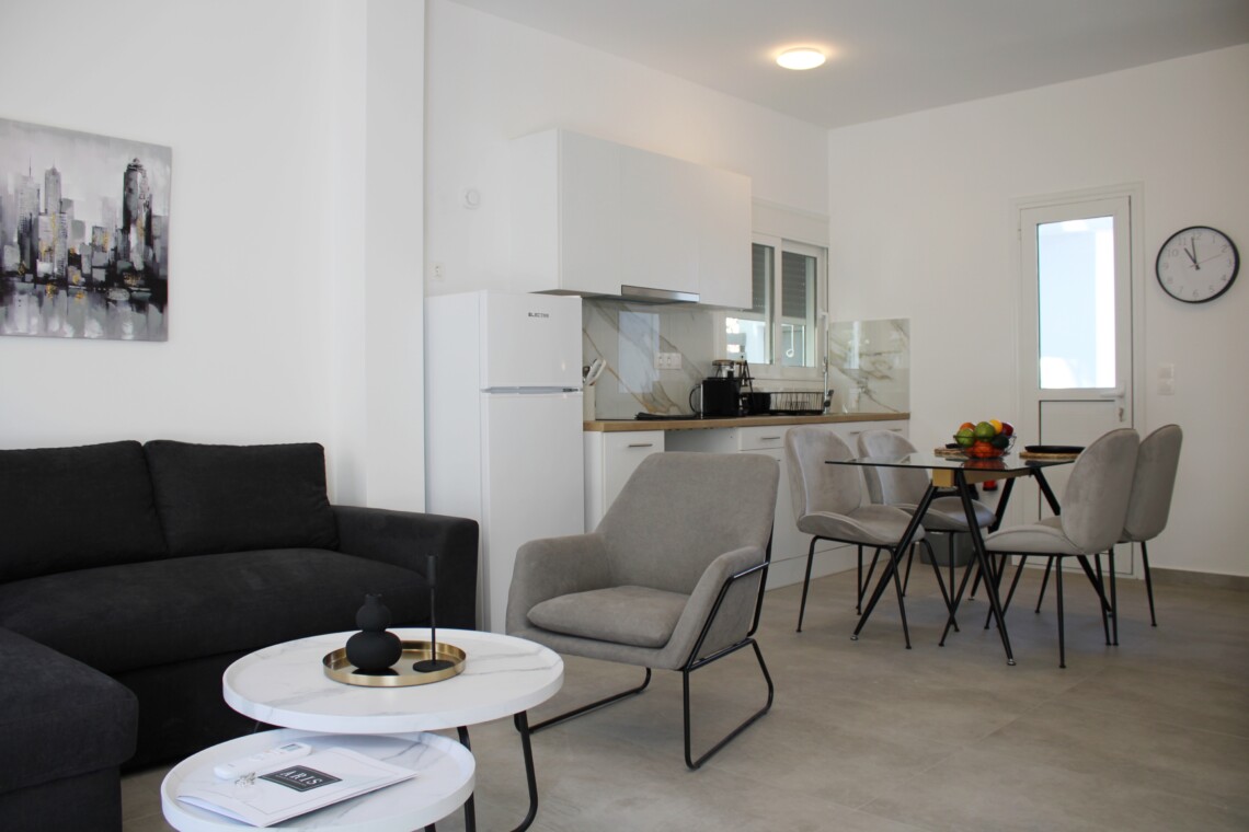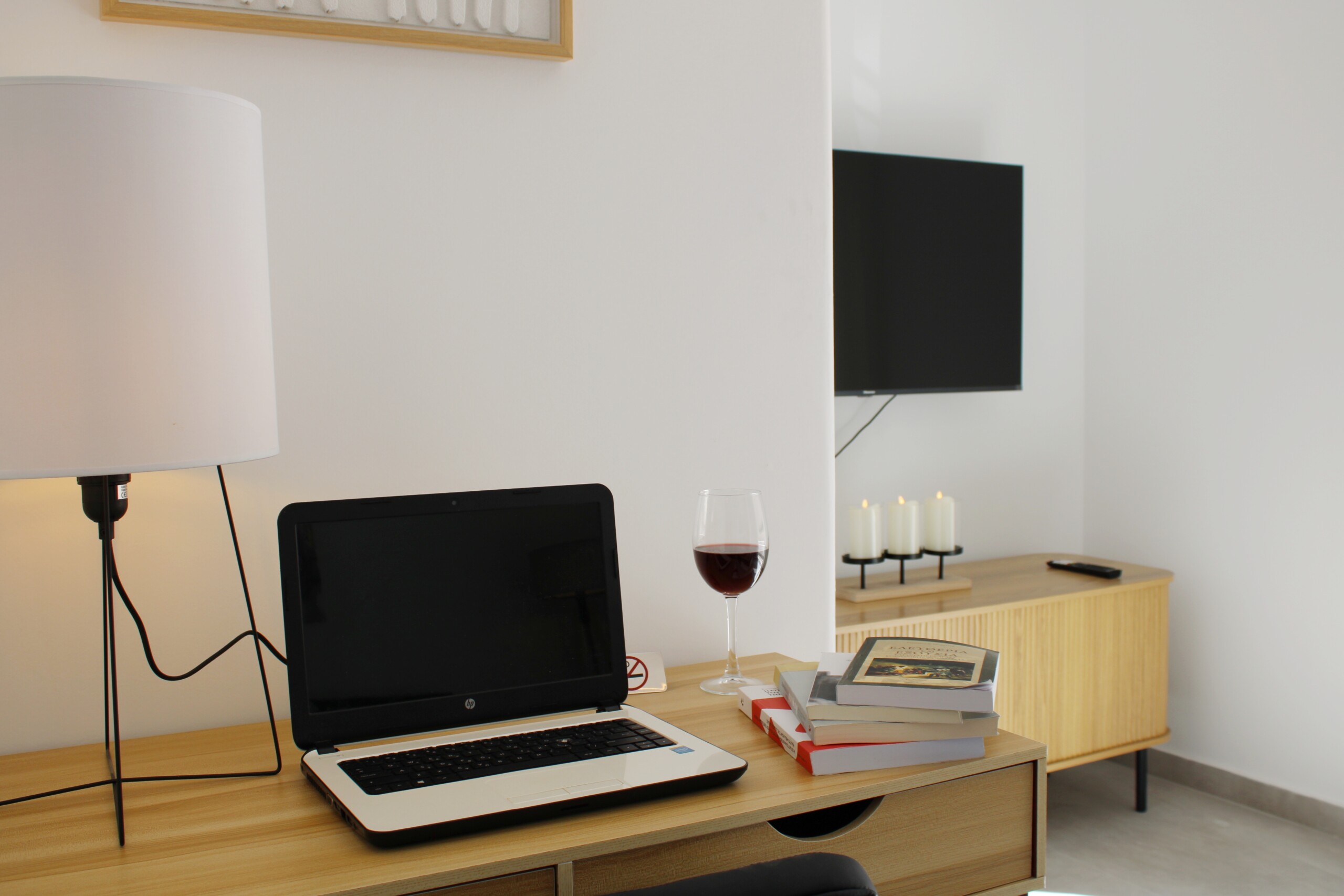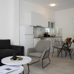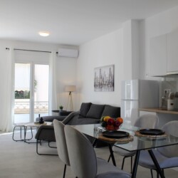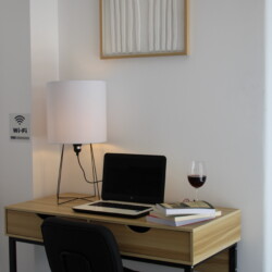 It features a fully equipped kitchen, working area with a desk, big living room, a modern private bathroom and air-conditioning and a 43″ flat screen television. Also a private balcony complements the space, providing an additional area for relaxation and natural light.