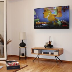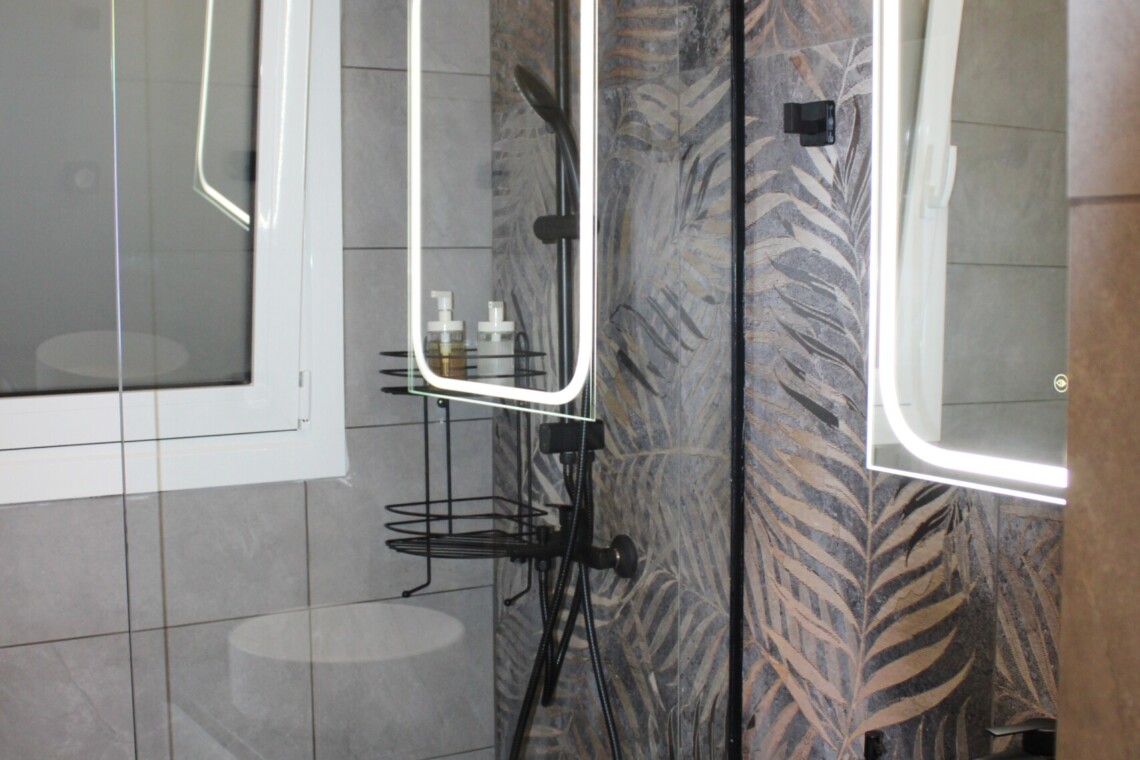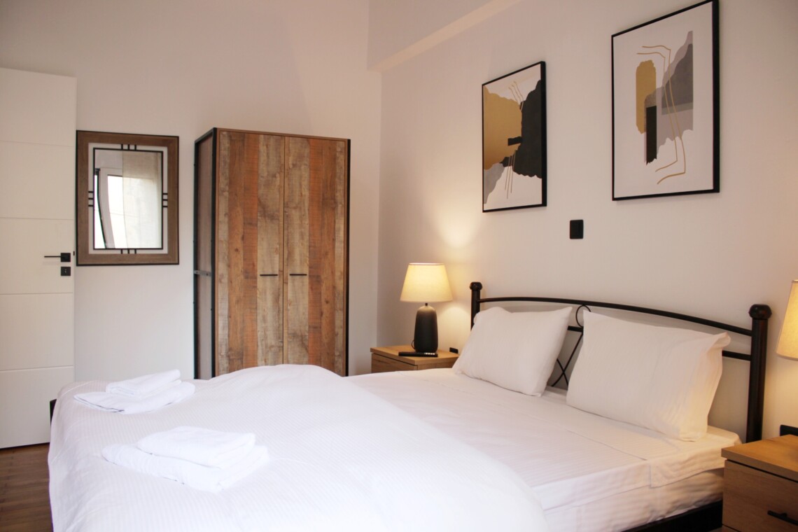 It features a 86 sqm layout, recently renovated to the highest standards, offering both style and comfort. The apartment includes a cozy living room with a large comfortable sofa and a 43″ smart TV with Netflix, a fully equipped modern kitchen with a refrigerator, oven, stovetop, and all the cookware and cutlery you may need.