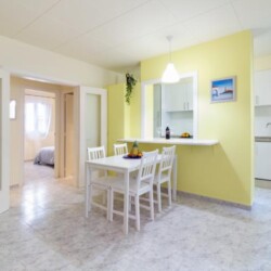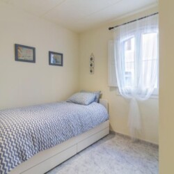 El inmueble, reformado en 2019 y en optimo estado, dispone de sala de estar, cocina americana totalmente equipada, baño completo y tres dormitorios: uno con cama de matrimonio, otro con cama nido convertible en dos individuales y un tercero con cama individual.