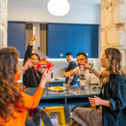 This listing is for a bed in a shared 6-bed dormitory, not a private flat or room. You’ll be sharing the space with fellow students and young travelers, which makes it a perfect option for those looking to make new connections and enjoy a social, community-style living environment. The dorm features shared bathrooms and access to a communal kitchen, dining area, and rooftop terrace.