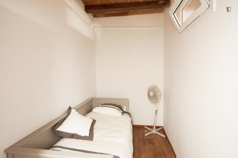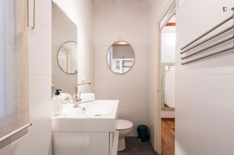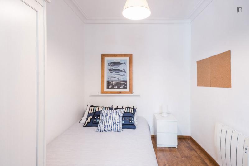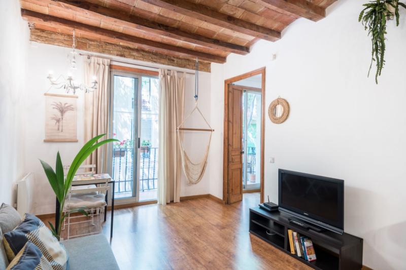 A two-bedroom apartment in the Poblesec neighbourhood, a stone’s throw from Avenida Paralel and Calle Parlament and Calle Blai, famous for their wide variety of bars and restaurants. The flat has a bright living-dining room with an integrated kitchen and a balcony, a double bedroom with a private balcony, another bedroom with a single bed and a complete bathroom. It stands out for its excellent combination of original elements of Catalan architecture such as its exposed brick ceiling and original wooden beams that combine perfectly with the parquet floor and natural wood frames, creating a very nice feeling of warmth. In it you will find everything you need, as it has been decorated and prepared for a cozy stay. It is fully equipped with appliances, kitchen utensils, high speed WIFI and TV. Código Registro Unico: ESFCNT**********009