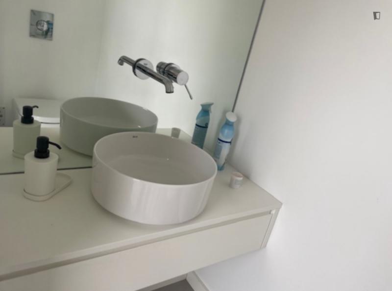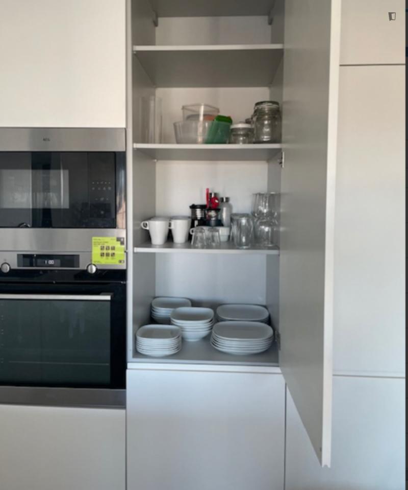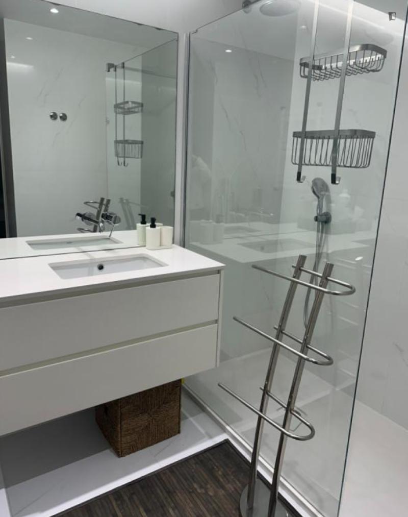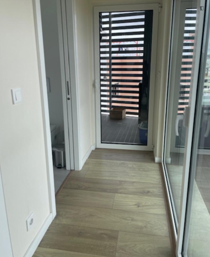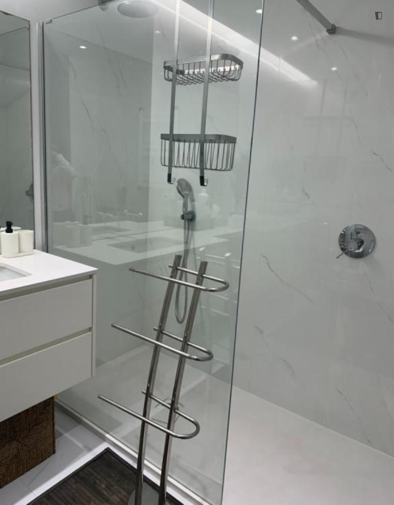Welcome to this beautiful flat! Great location and amazing view. 5m walk from: Hospital Lusíadas, subway, restaurants, pharmacies, supermarkets, and schools. The flat features a bedroom with a private bathroom, a shared bathroom, a living room, and a kitchen. Great view, balcony, elevator, parking. Household appliances: dishwasher, washing machine and dryer, induction hob, microwave, fridge-freezer. Fully equipped and furnished. Please note, you must pay two months’ rent in advance and a security deposit.