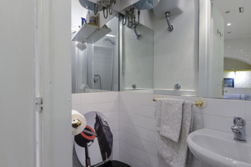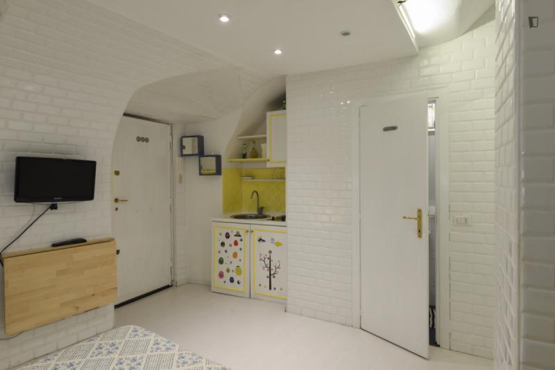 Diamo unocchiata a questo fantastico studio in una posizione centrale nella storica città di Roma! L’appartamento a piano terra è situato al centro della metropoli, vicino a diversi punti di interesse come il famoso Pantheon e anche a poca distanza dall’ Università Telematica Internazionale UNINETTUNO e da altre università. Inoltre, vivendo così vicino al centro della città, sarete circondati da tutti i tipi di negozi, caffetterie, ristoranti e anche collegamenti di trasporto che possono facilmente connettersi al resto della città. Lo studio dispone di una camera da letto, una cucina e un bagno, con aria condizionata caldo-freddo e wifi. Ben disposto e con un’atmosfera confortevole, questo posto è pronto ad essere una meravigliosa casa lontano da casa. Controlla!