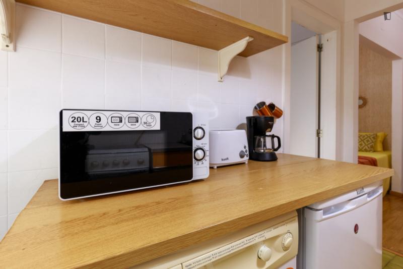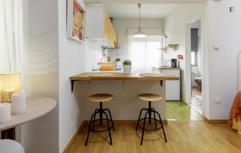 Studio colorfull apartment in Alameda near IST Técnico. Apartment with all amenities, completly funished and ready to live in. With 3 windows, Bathroom with bathtub. $ minute walk from Alameda Subway station, safe neighbourhood, with 3 supermarkets, cafes, bistros, parks, bus, and all types of stores,