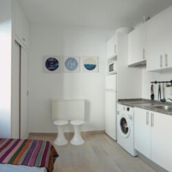 The properties in this building do not have washers inside the units. Instead, there is a shared industrial washer and dryer located within the building. The cost of washing is 3€, and the cost of drying is also 3€.
