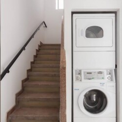 The properties in this building do not have washers inside the units. Instead, there is a shared industrial washer and dryer located within the building. The cost of washing is 3€, and the cost of drying is also 3€.
