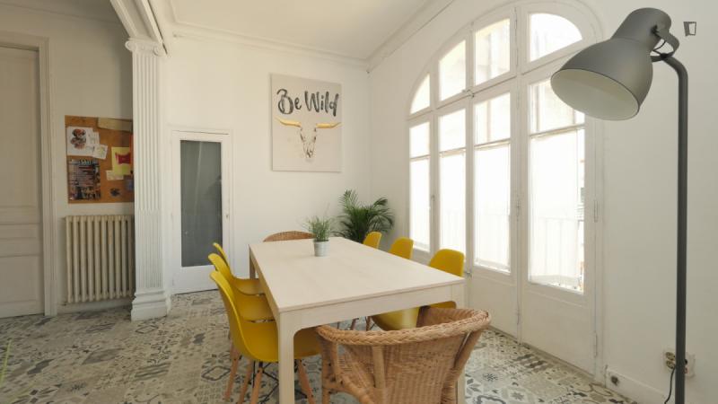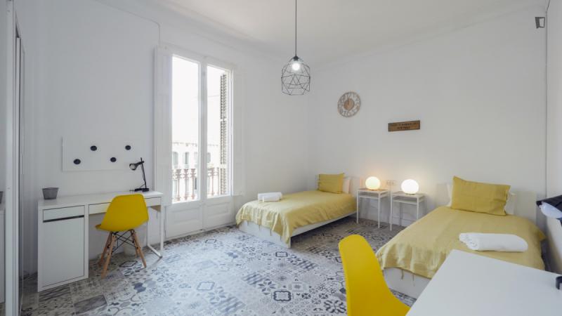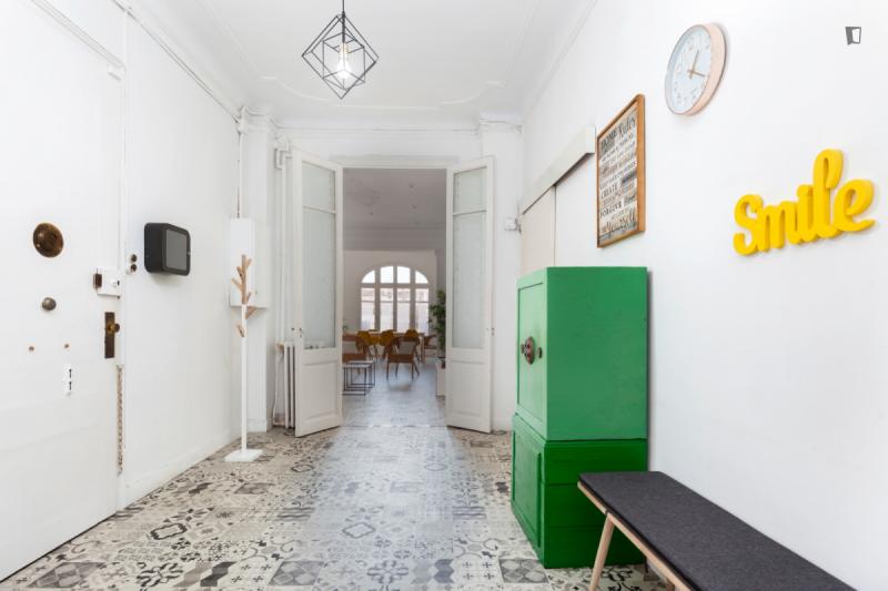 La tarifa de administración es por persona. Vas a la Barcelona moderna y aún no has elegido el lugar perfecto para alojarte Aquí hay un hermoso apartamento ubicado justo al lado de la estación de metro Diagonal. Vivirás en una zona popular y popular de la ciudad, donde encontrarás algunos lugares culturales, cafeterías, restaurantes y jardines alrededor. Además, no estarás lejos de la Universidad Politécnica de Cataluña. La propiedad ofrece un total de nueve habitaciones, dos baños comunes, una sala de estar y una cocina. Las habitaciones disponibles tienen un ambiente cómodo y están listas para satisfacer las necesidades de sus estudiantes. Finalmente, la cocina está bien equipada con todos los utensilios básicos que necesitas para cocinar algunos de tus alimentos favoritos. Ve a por ello! Cada dos semanas, el propietario cambiará la ropa de cama y toallas.