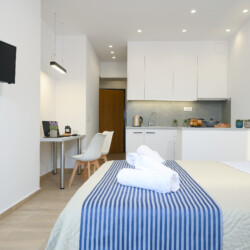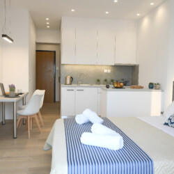 The studio is suitable for couples and business travelers. It is 10 min on foot from the city center and close to bus stations for any direction you want to move. The neighborhood is quite. There are shops, cafes, super markets, laundry around the apartment. The advantage of this studio is that it is quiet and you can easily travel to any direction by car or bus. For Students is also perfect.The bus stop to Voutes University area, ITE, University Hospital is just two min walk The studio is comprised of one bedroom with a double bed a bathroom with a shower, a very comfortable sofa that one can sleep, an open concept kitchen and living room with a dinner table. The kitchen is equipped with everything you will need for your cooking nights. By staying in our place you can visit whole Crete from east to west with daily excursions.We are 10 minutes from City center, Archaeological and Historical museum. The bus stop is only 2 minutes away. Beach Ammoudara is 10 minutes away by bus or car. General University Hospital, TEI, ITE and University of Crete are only 15 minutes away by car or bus. Located in Heraklion’s elegant district. Guests of our studio are within a 10-minute walk from the city center, shopping and historic attractions. Knossos archaeological site is a 15-minute drive. Heraklion International Airport is at 5 km. Heraklion Port is at 3 km. The studio is stated on the second floor of a group of studios. It is 32 Square meters with Balcony as well. It contains two single beds, Air condition with cool and heat free as well. The bathroom contains shower with hot water 24 hours a day. The studio contains as well full kitchen equipped and smart TV. On the day of your arrival We will be waiting for you at the studio to guide you through it and give you all the necessary information about the studio and the city. Apart from that, We will not disturb you unless you require help with anything. Also you can do self check – in if u like at any time., The is a big box outside the building near the bells with your key inside. Ask for the code in order to get your key We are at disposal to help you during day hours in order to have a great stay in the Island of Crete. The studio is located in Therissos New Stadium in Heraklion, Crete,Greece. It is quite neighborhood and it is only 10 minutes walk from the city center. There is a pharmacy and a laundry in the same street of the studio. On the main road you will find many cafes, pastry shops gas station and super markets. How to get to the studio from the airport of Heraklion: 1) By Bus You take bus number 5 (Dimitriou Therissos) and get off at the stop ” Therissou 16″. The duration of the ride is 20-25 minutes and the cost of the ticket is 1.50 euro per person per ride. When you get off the bus, you walk down the road for 30 meters. You turn right on the first road. The first building Michail Arhaggellou 25 is on your left where is your flat 2) By Taxi. There are plenty of taxis outside the airport of Heraklion. The ride takes about 10-15 min, depending on the traffic and the cost is about 10 euros per ride. 3) Rent a Car. If you have pre-booked a car, the representative will give you all the information you need about traffic, gas stations etc. If you have a GPS you can either type in the address or the coordinates: Latitude: & Longitude: If you arrive by car there is parking for free outside the building. If you need parking close area under charge. It is 5 minutes walk from the studio. How to find your way around the city: The studio is in a particularly privileged location. It is 10 minutes away on foot from the city center, 10 min from the Archaeological Museum and 10 min from the historical walls of the old town of Heraklion. There, you can also visit the grave of the famous author Nikos Kazantzakis. If you want to visit the Palace of Knossos, there is a bus station two minutes walk from the studio The ride takes about 15-20 minutes. Outside the palace, you can find plenty of private tour guides to guide you through it if you like. Due to the corona virus COVID 19 we would like to inform you that: You can do self check in with a 3 digit code that we give to your prior your arrival. Initially we complied with all the rules of personal hygiene and for this period we use strict protective masks as well as gloves We use steam cleaner for all the surfaces of the apartment for fumigation all the time when we clean it up, and as a result of this, we use less chemicals during the cleaning process. In the apartment there is a bottle of Antiseptic liquid. In general, we operates in accordance with Greek and European laws and directives and is constantly updated with this epidemic situation.