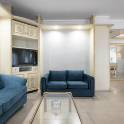 Living Room: Three comfortable sofas, Smart TV, and air conditioning