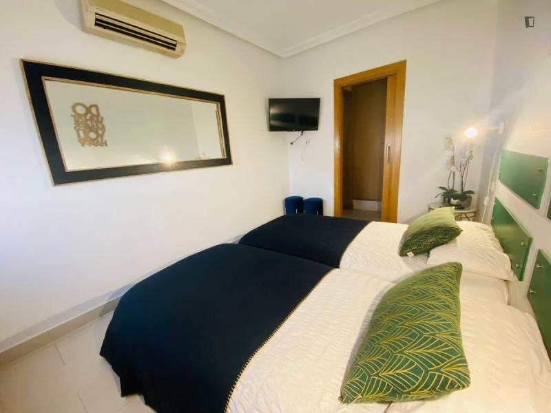 Since you will travel to Madrid to continue this exciting new stage in your student life, we are sure you are looking for a well-located place to stay and this apartment in Barrio Salamanca is exactly what you are looking for. You do not need to thank us, take a look. Here, you will have the advantage of being close to everything a student needs, from transport connections, such as the Manuel Becerra metro station that connects to the heart of the city, to several shops, restaurants and supermarkets that are within walking distance. Combining this with the comfortable and attractive aspect of the property, makes this an ideal choice! It has twin beds bedroom,living room, 50″ Smart TV, kitchen and 2 baths. WIFI 5G FIBRA. As you can see, this place has everything, appearance, comfort and location. So, if all this made you imagine an incredible adventure, you have your answer. Go for it!!
