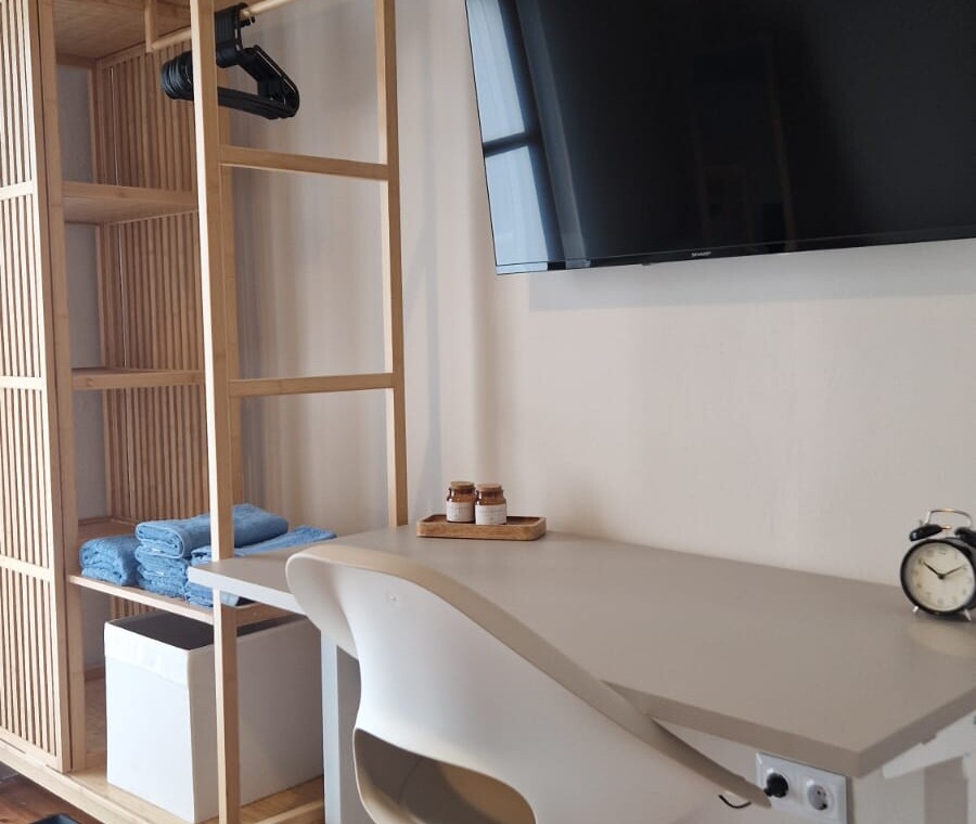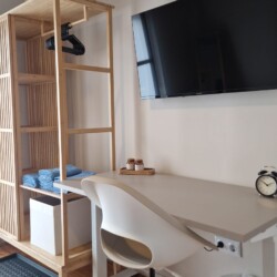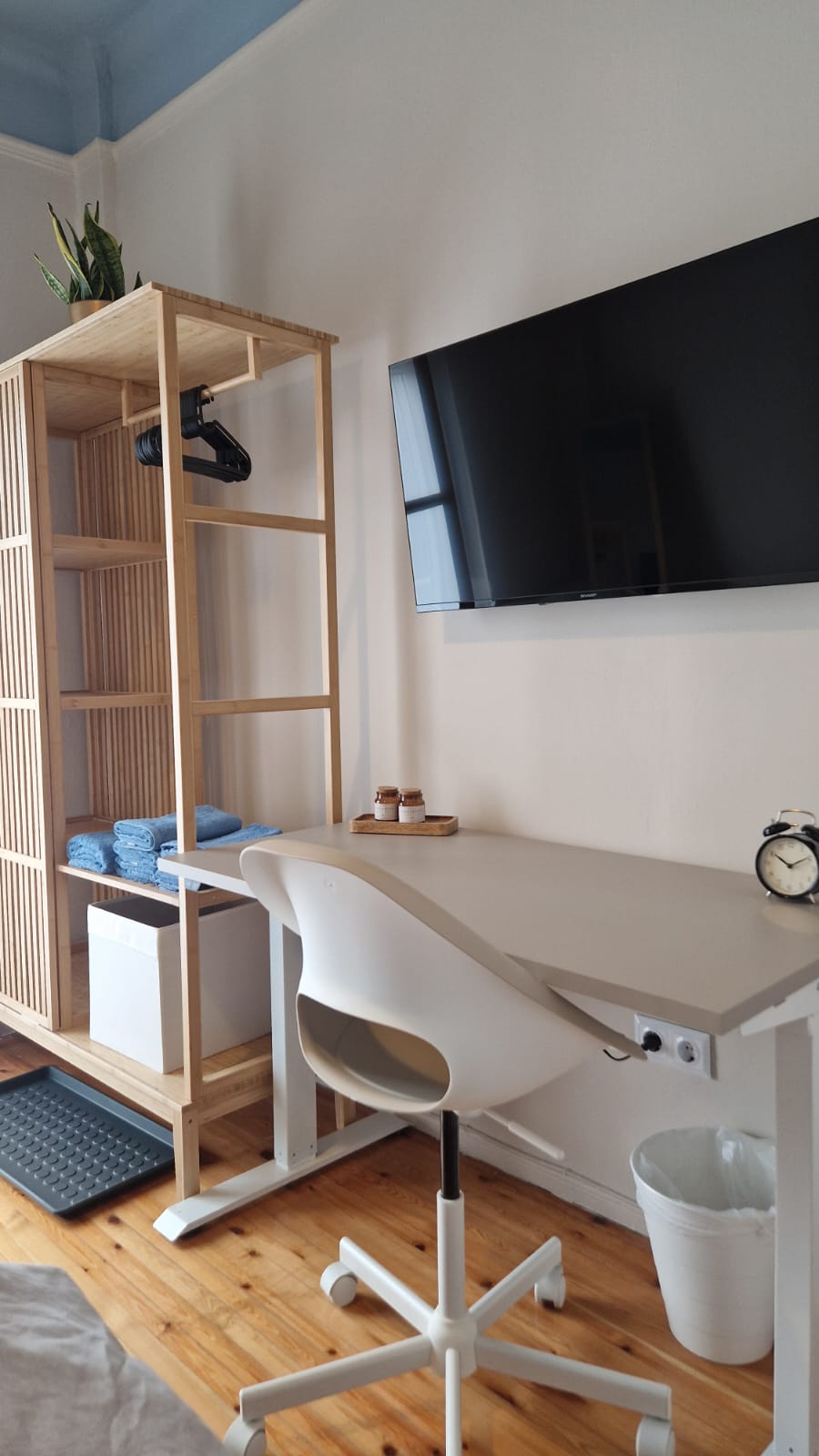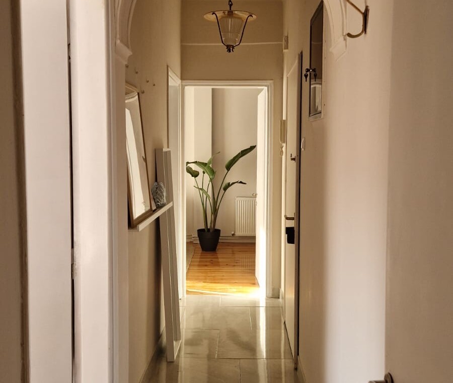 Imagine living in a creative and flexible living space right in the heart of Thessaloniki – a vibrant, diverse, and historic city. Our nomadic co-living apartment is more than just a home; it’s a meeting place and networking hub for globetrotters, free spirits, and creatives. The 97-square-meter apartment features three bedrooms, a spacious living and dining area, and fantastic views of the city and harbor from the balcony.