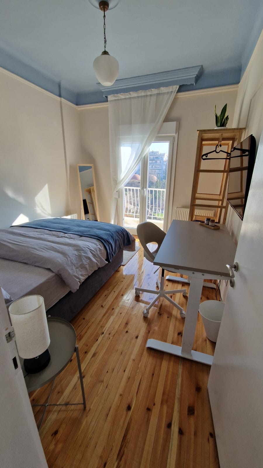 Stellen Sie sich vor, Sie leben in einem kreativen und flexiblen Wohnraum mitten im Herzen von Thessaloniki – einer pulsierenden, vielfältigen und geschichtsträchtigen Stadt. Unser nomadisches Co-Living-Apartment ist mehr als nur ein Zuhause; es ist ein Treffpunkt und Ort zum Netzwerken für Weltenbummler, Freigeister und Kreative. Das 97 Quadratmeter große Apartment verfügt über drei Schlafzimmer, einen großzügigen Wohn- und Essbereich sowie einen fantastischen Blick auf die Stadt und den Hafen vom Balkon.