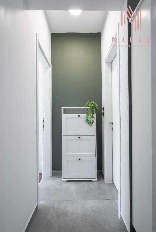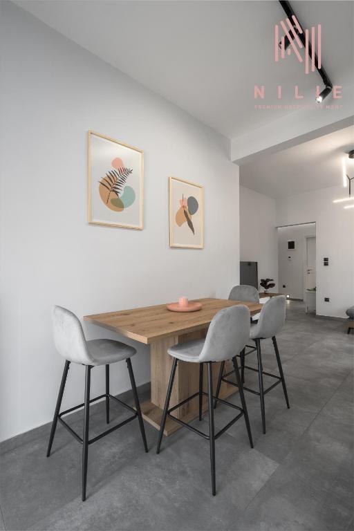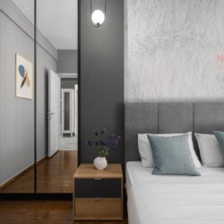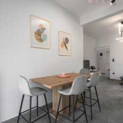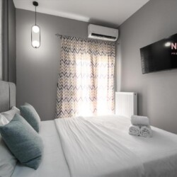 Modern Amenities: Guests enjoy air-conditioning, ensuring a pleasant stay. The apartment includes a bathroom with a shower and a fully equipped kitchen.