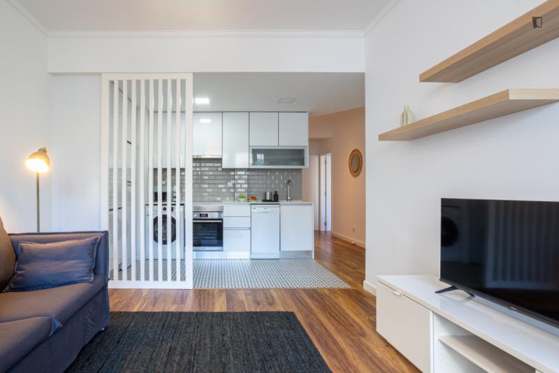Este acolhedor apartamento T1 foi cuidadosamente decorado para proporcionar uma estadia confortável e requintada. Localizado em Picoas, uma das zonas mais centrais e bem conectadas da cidade, você estará a poucos minutos de distância dos principais pontos turísticos, como a Avenida da Liberdade e o Saldanha, além de estar perto de transportes públicos, restaurantes e lojas. É ideal para estadias mais longas, trabalhar a partir de casa e ao mesmo tempo viver como um Lisboeta!