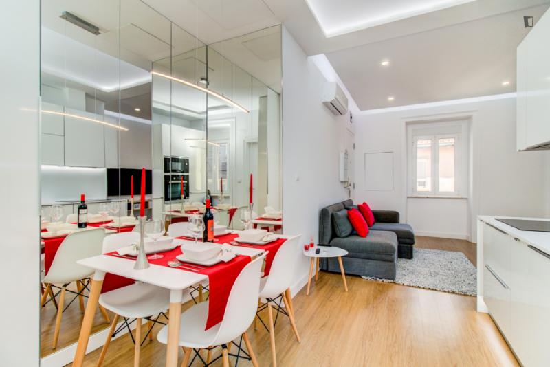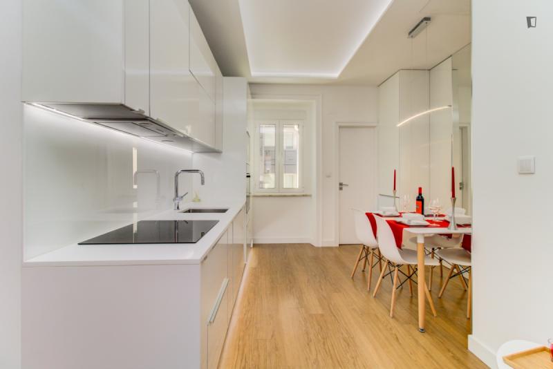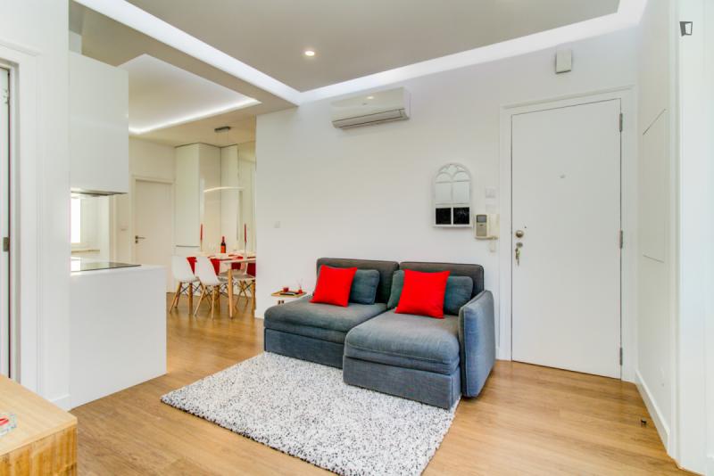 Os check-in são a partir das 16:00 até às 19h30 e o check-out são de manhã até 11:00. Procurando por um lugar de alta qualidade e dar uma sensação real de Lisboa. Dê uma olhada neste agradável e apartamento em Picoas, uma localização estratégica, uma vez que você está perto de várias ligações de transporte e está no centro da cidade, a caminho de praticamente todos os lugares. Mais do que uma área vibrante, Picoas irá colocá-lo perto de muitos locais de ensino, como o Instituto Superior Técnico, que fica a uma curta distância. Soa bem né Moderno e confortável, o apartamento tem dois quartos, uma sala de estar, uma cozinha e um banheiro. No prédio, você também encontrará um estacionamento privativo! O pacote de internet é de 1 Gbps , 180 canais e Telecine canal de filmes.