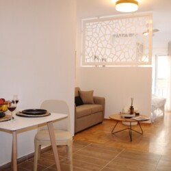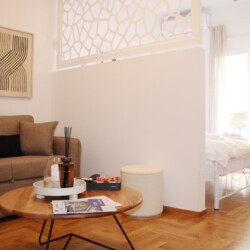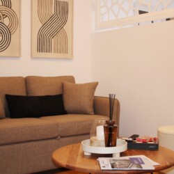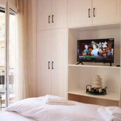 It features a 86 sqm layout, recently renovated to the highest standards, offering both style and comfort. The apartment includes a cozy living room with a large comfortable sofa and a 43″ smart TV with Netflix, a fully equipped modern kitchen with a refrigerator, oven, stovetop, and all the cookware and cutlery you may need.