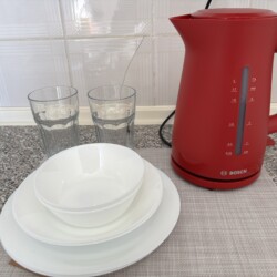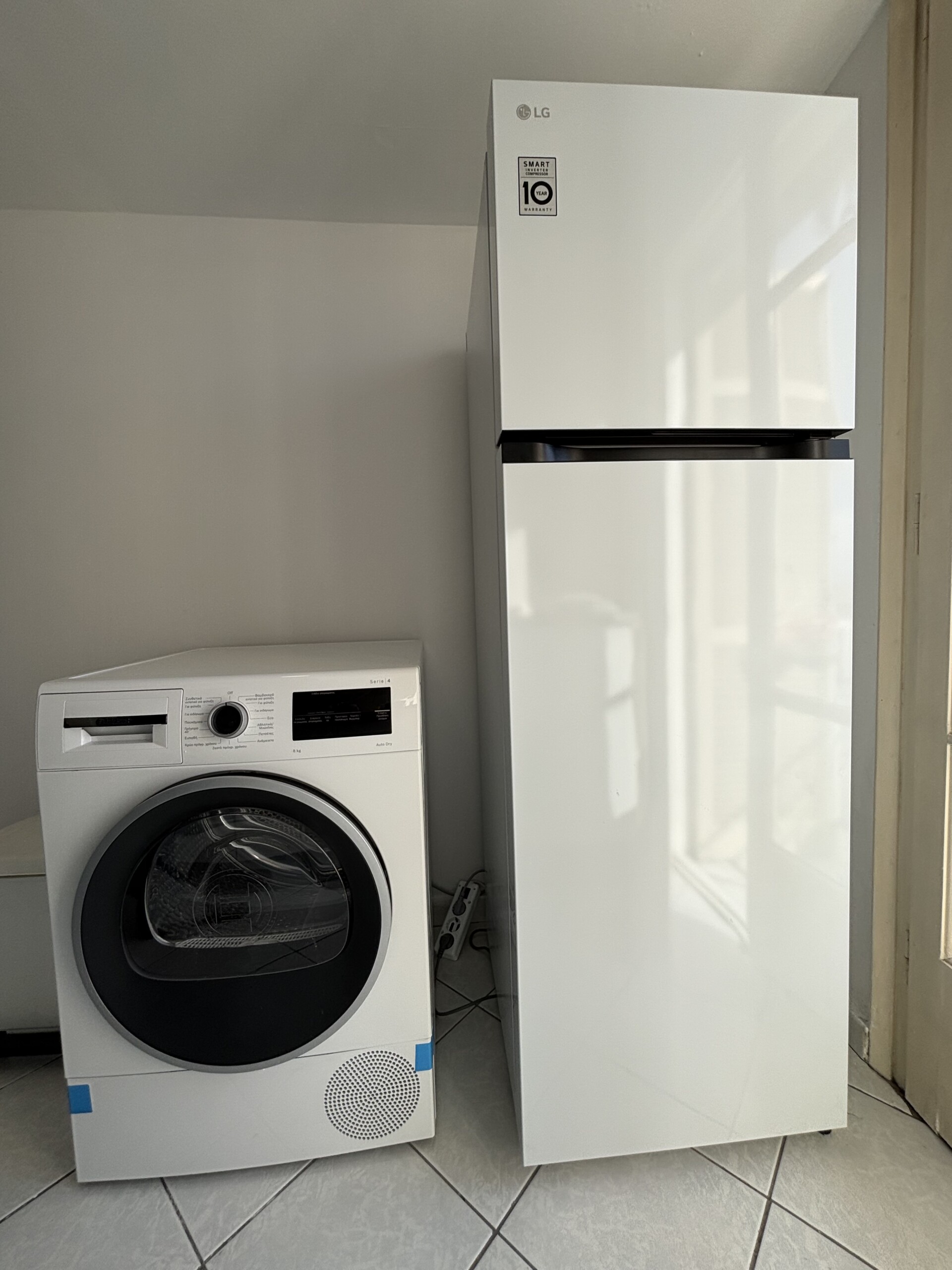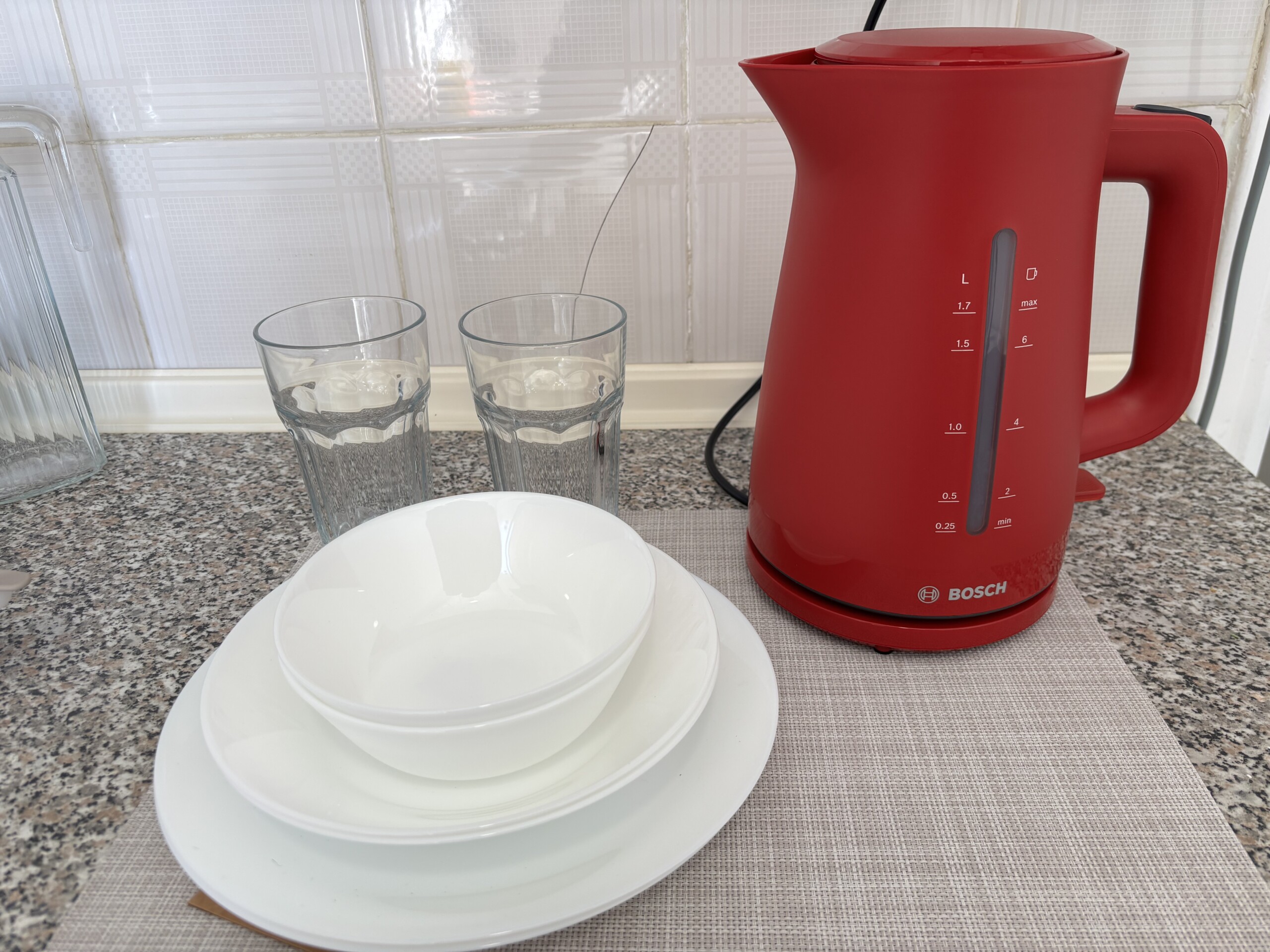Fully equipped kitchen (cutlery, dishes, cookware, Bosch kettle, LG fridge, oven with induction hob)