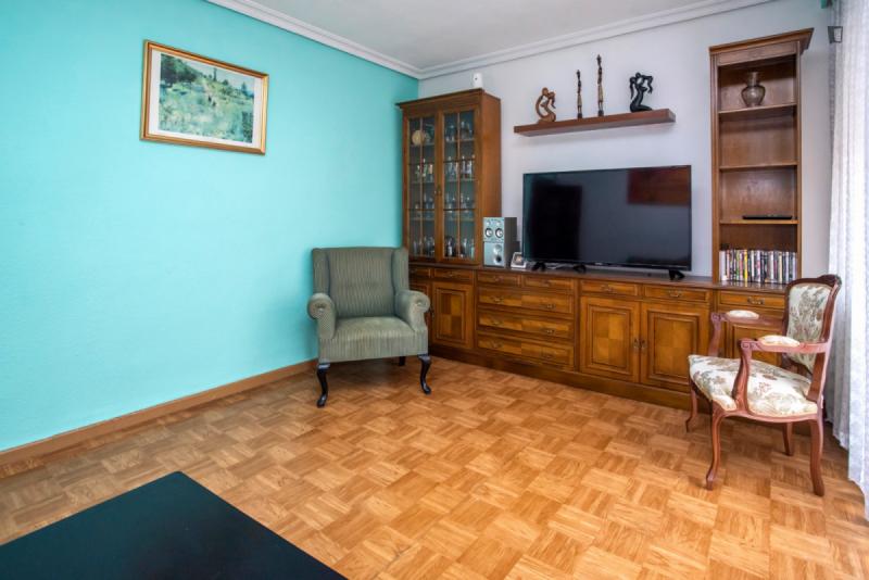 Appartement de 3 chambres situé dans la rue Armenteros dans le quartier de Valdezarza quartier de Aravaca-Moncloa. Quartier calme, maison illuminée, près de la ville universitaire, CEU de San Paulo, près de lUniversité Complutense bus 132 direct. Entouré d’espaces verts tels que la Dehesa de la Villa l’un des poumons verts de Madrid et le Parque de Rodríguez Sahagún. Avec des magasins, centre commercial La Vaguada, supermarchés, écoles, bars, centre sportif, centre de santé à proximité. Avec la ligne de métro Valdezarza à 2 minutes et Francos Rodriguez à 8 minutes. Les bus 132, 127, 126 et le hibou N21 à 4 minutes de chez vous. bus 128 et hibou N22 à 10 minutes de la maison. Zone non SER et parking à proximité. Propriété de 70 mètres carrés composée de trois chambres à coucher, pièce éclairée indépendante de 18 m2 avec terrasse, cuisine équipée, salle de bain. Armoires dans toutes les chambres, cordes à linge des deux côtés du sol. Maison entourée de grands espaces verts. L’un des meilleurs et des plus calmes quartiers à vivre à côté de l’université et avec les avantages d’être à l’intérieur de Madrid.