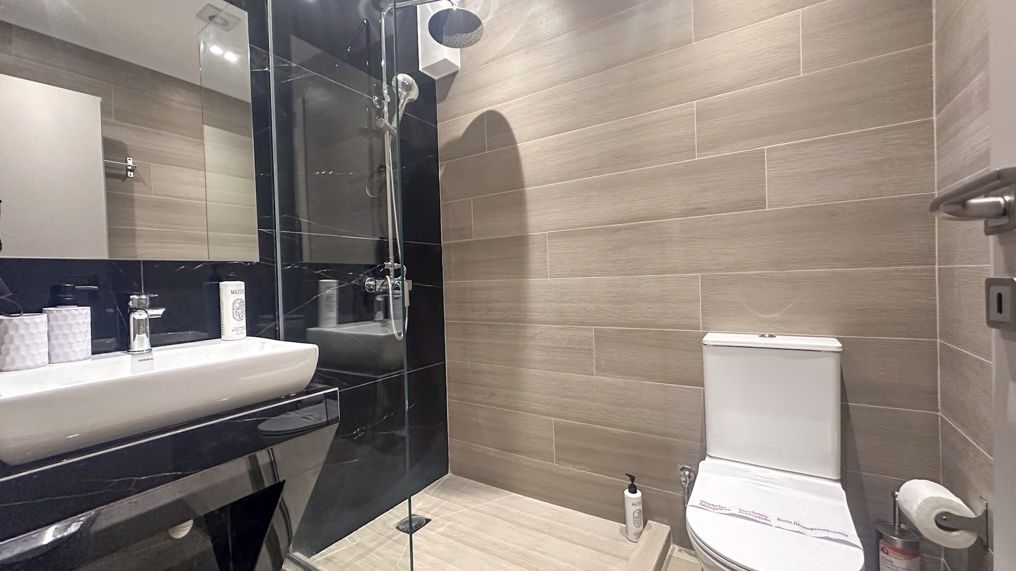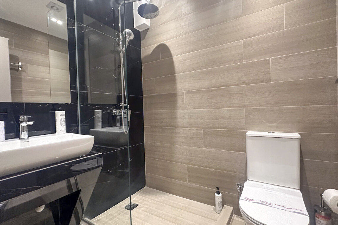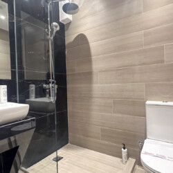 • Modern bathroom with shower