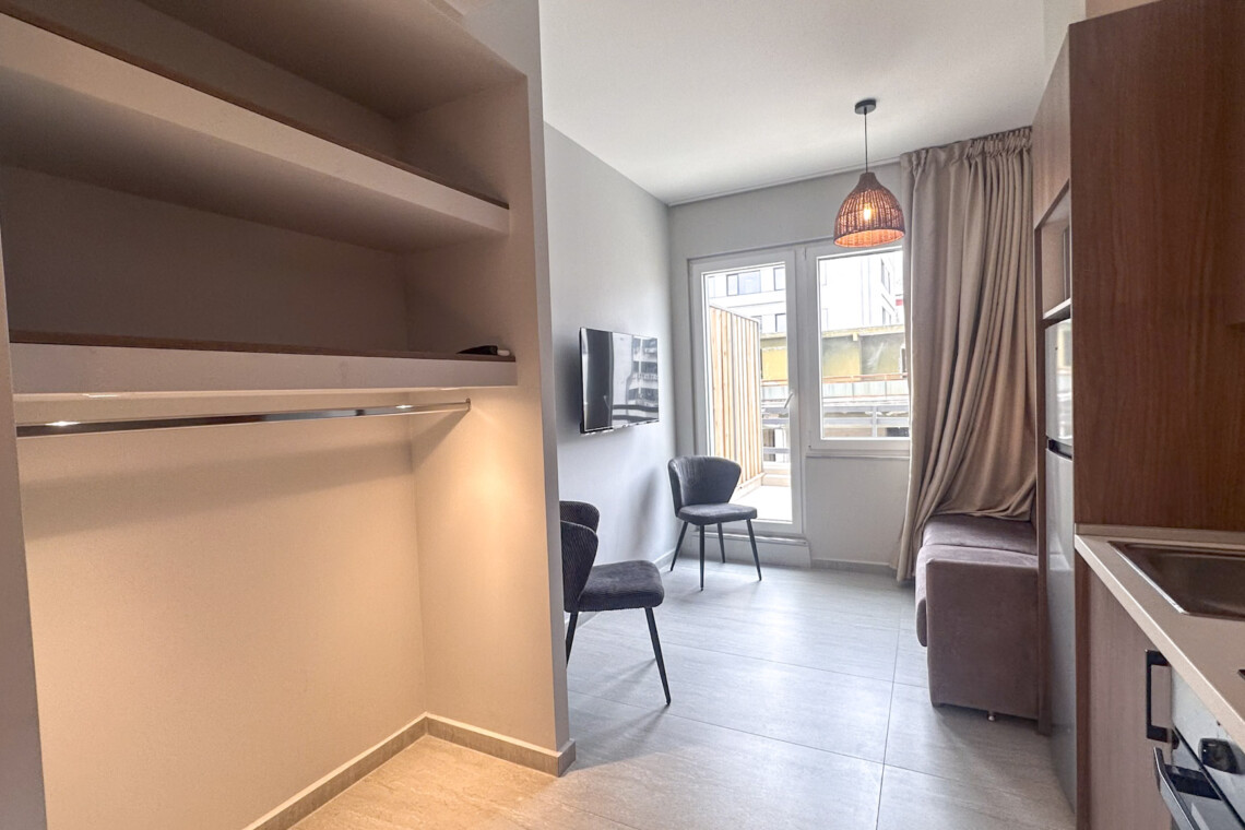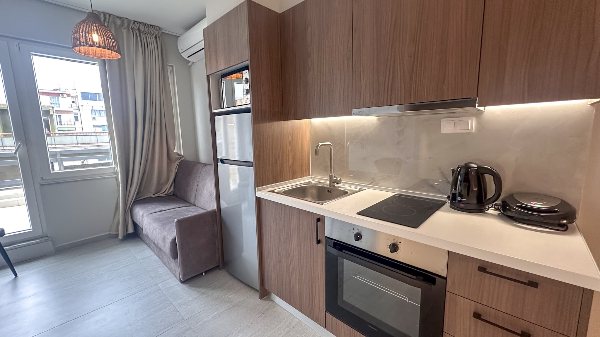 Welcome to Phedra One-Bedroom Apartment (25m²) – a stylish and recently renovated retreat on the 5th floor at Tantalou Street 30, designed for long-term living in Thessaloniki.