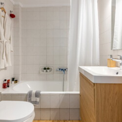 The apartment features one shared renovated comfortable bathroom, a shared 8kg washine machine and a shared fully equipped large Kitchen with a dining table, family fridge, electric cooker, microwave, dishwasher, small appliances, Kitchenware, iron board, iron, cleaning equippment etc.