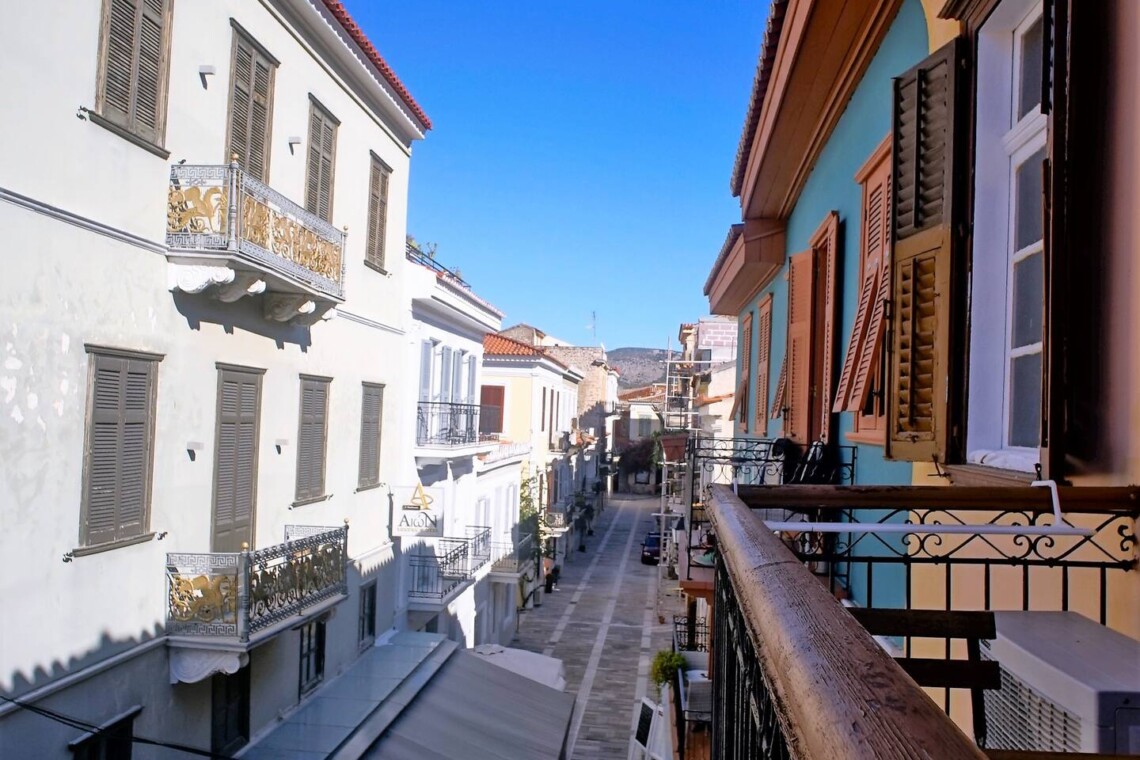 Located in the heart of old Nafplion, everything is within walking distance: supermarket (400m), pharmacy (100m), and parking (60m).