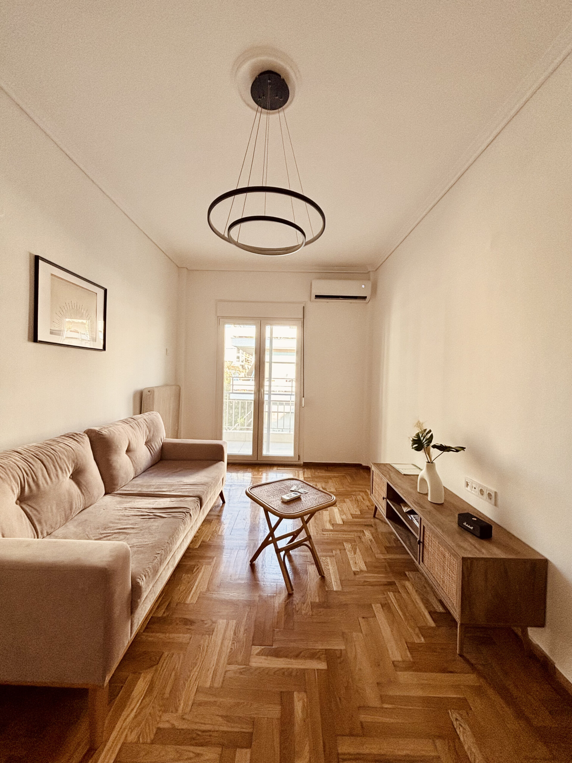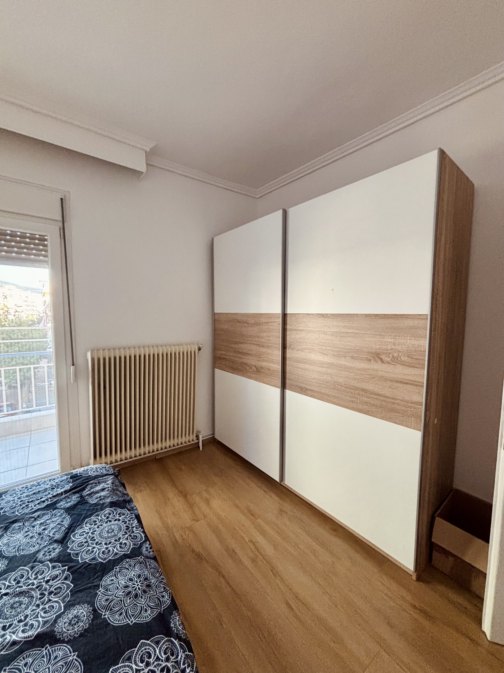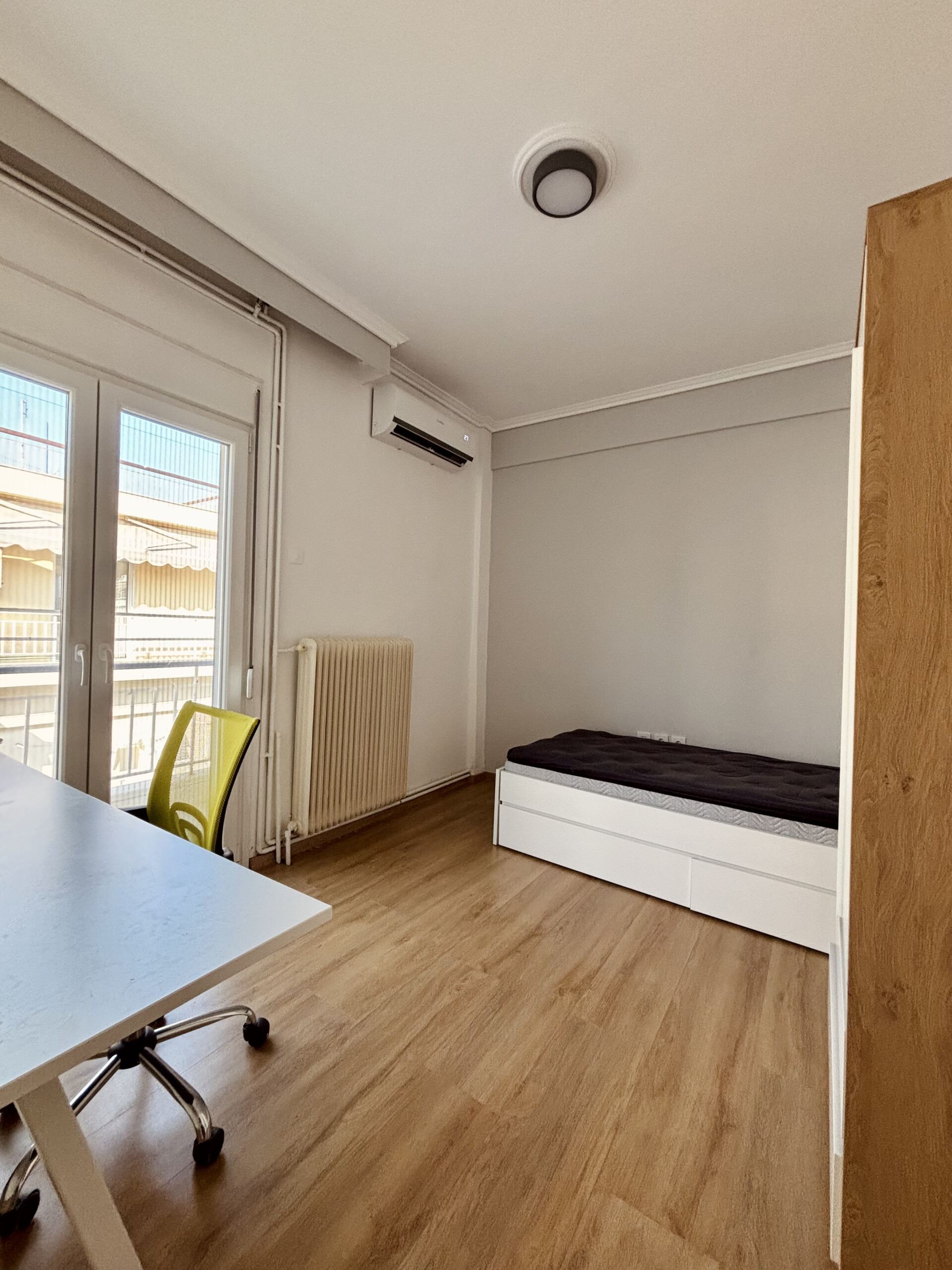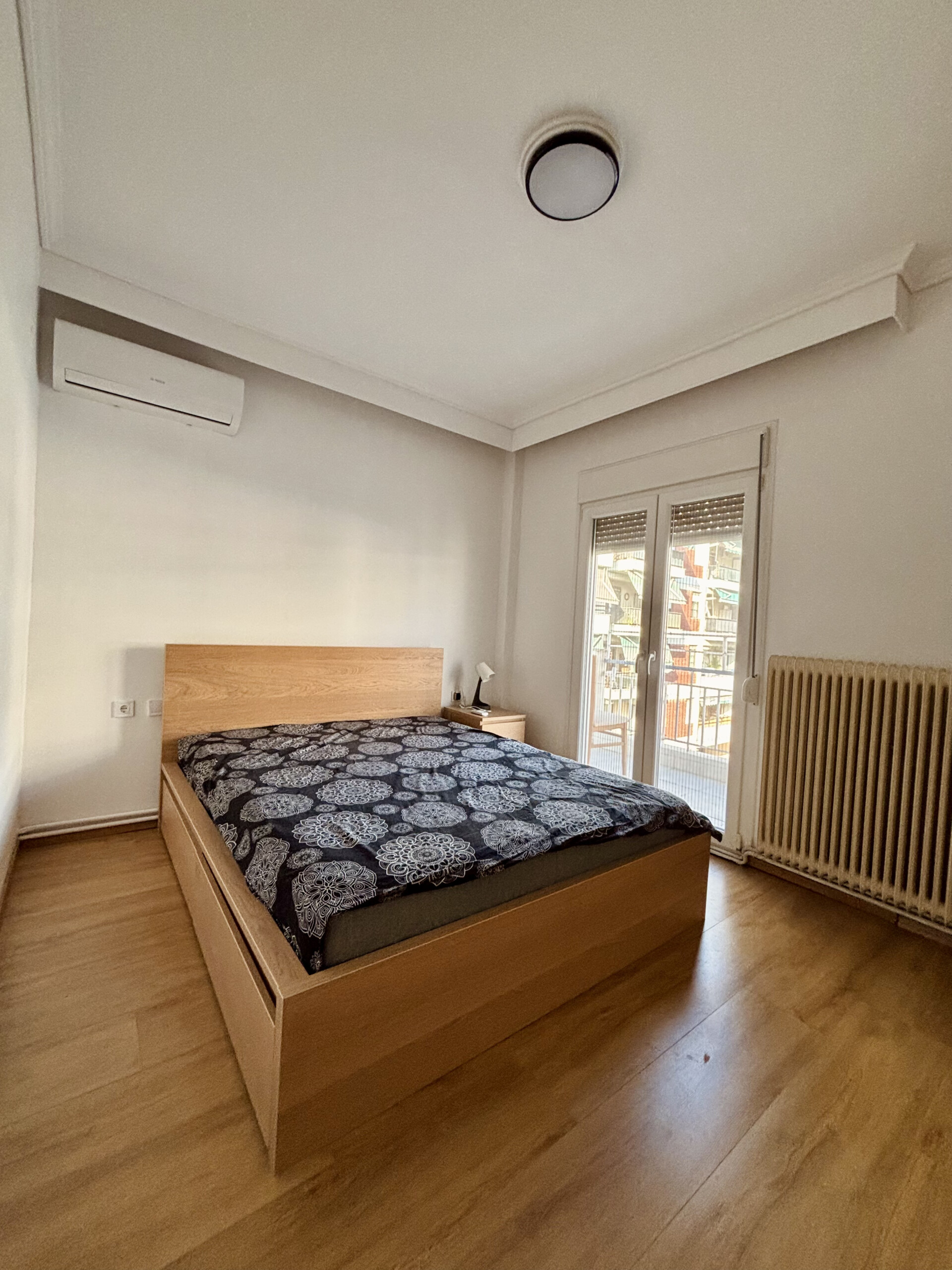 The apartment has 3 rooms – one huge living room and two bedrooms (1 room with a double bed, 1 room with a single bed). It has 3 inverter air conditioners, natural gas, an armored door, and double-glazed window frames. The flat is available starting from the mid of February 2026.