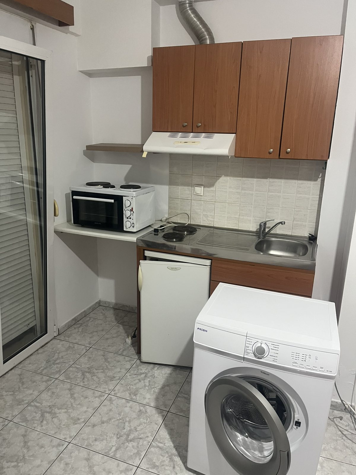 The apartment is fully furnished and thoughtfully designed, with a comfortable double bed and a spacious wardrobe, ensuring privacy and restful sleep. The living area is cosy and functional, while the kitchen is fully equipped with an oven, stove, fridge and all necessary kitchenware, making everyday cooking easy and convenient.
