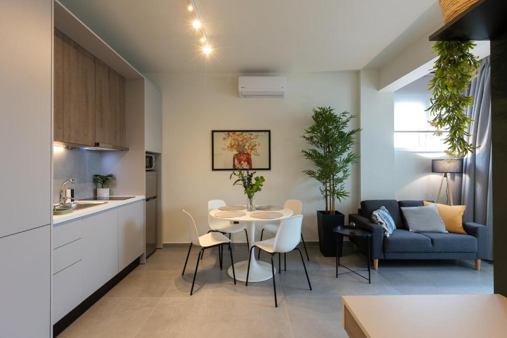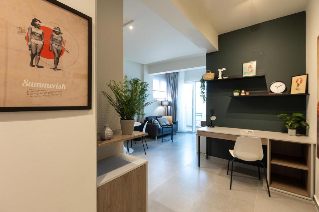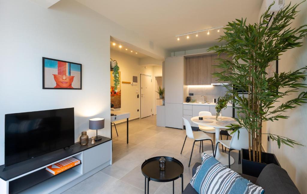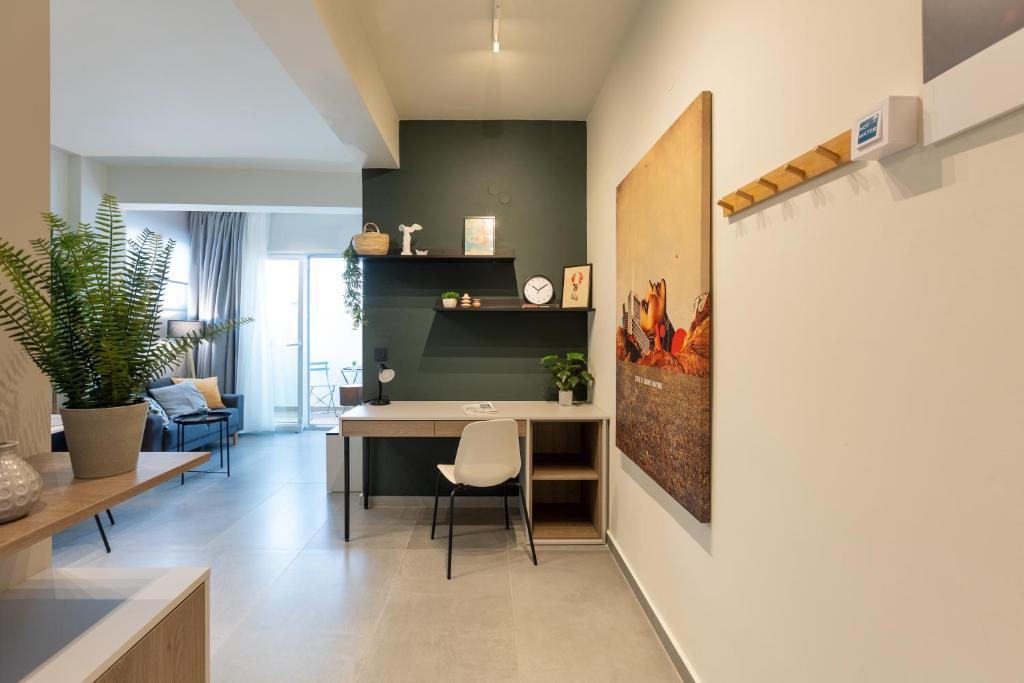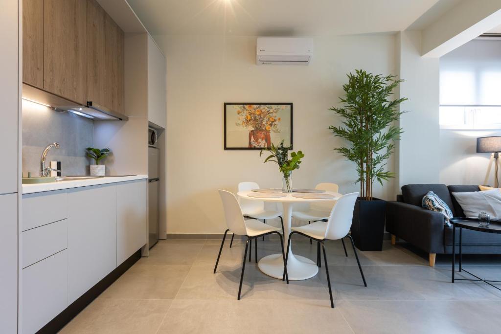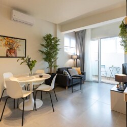 Modern Comforts: The Next Chapter offers a recently renovated apartment in Thessaloniki. Guests enjoy air-conditioning, a private bathroom with a walk-in shower, and kitchen featuring a coffee machine, refrigerator, and stovetop.