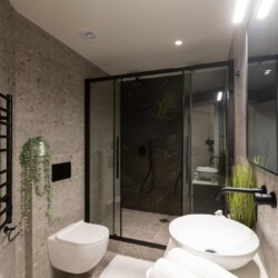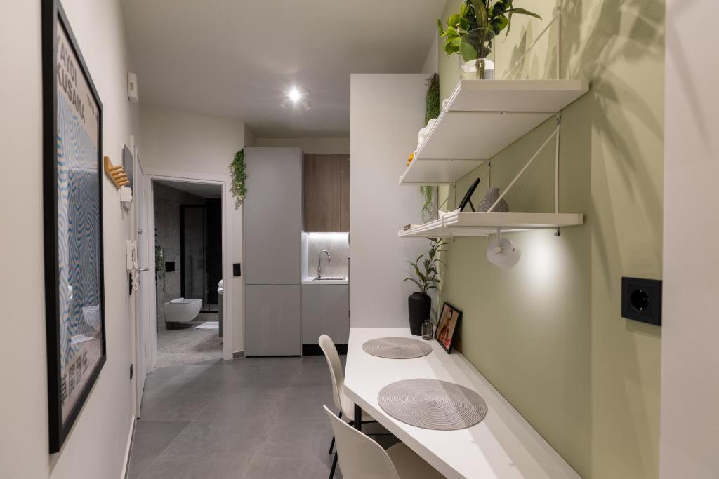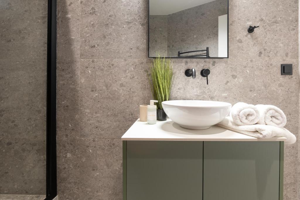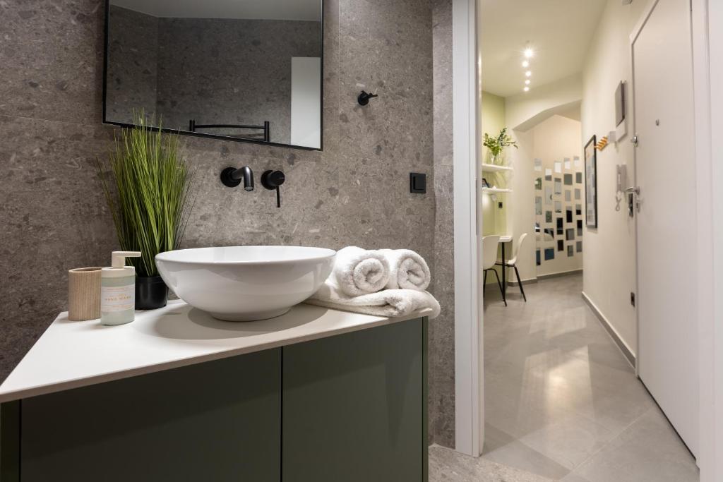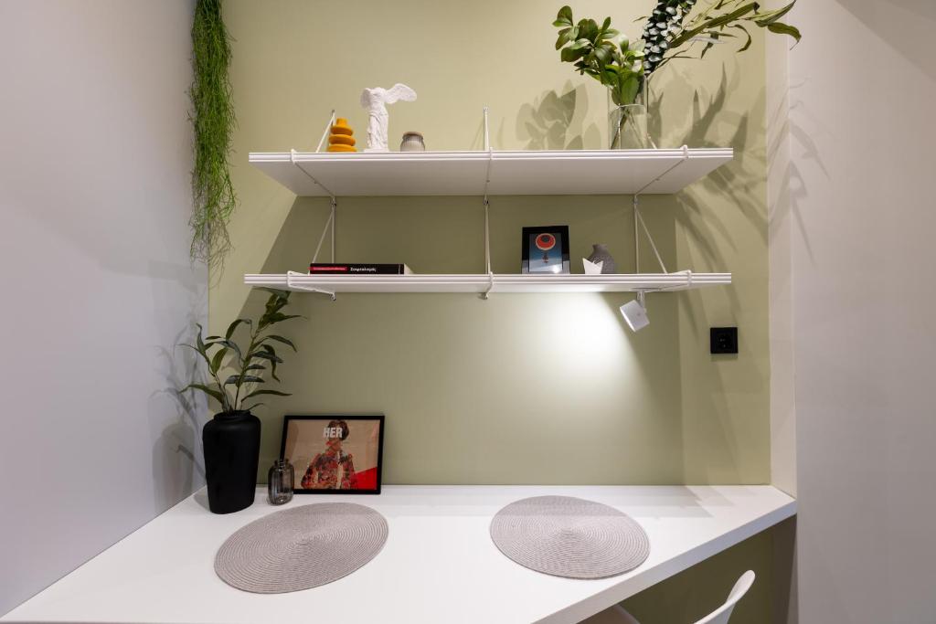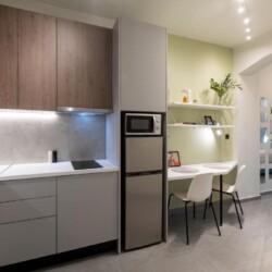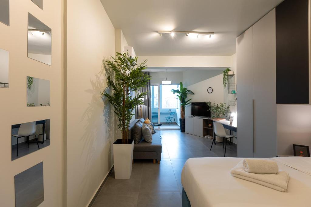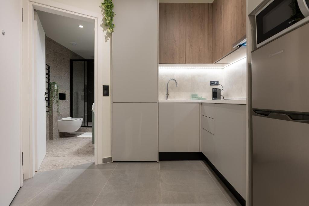 Modern Comforts: The Next Chapter offers a recently renovated apartment in Thessaloniki. Guests enjoy air-conditioning, a private bathroom with a walk-in shower, and a kitchen featuring a coffee machine, refrigerator, and stovetop.