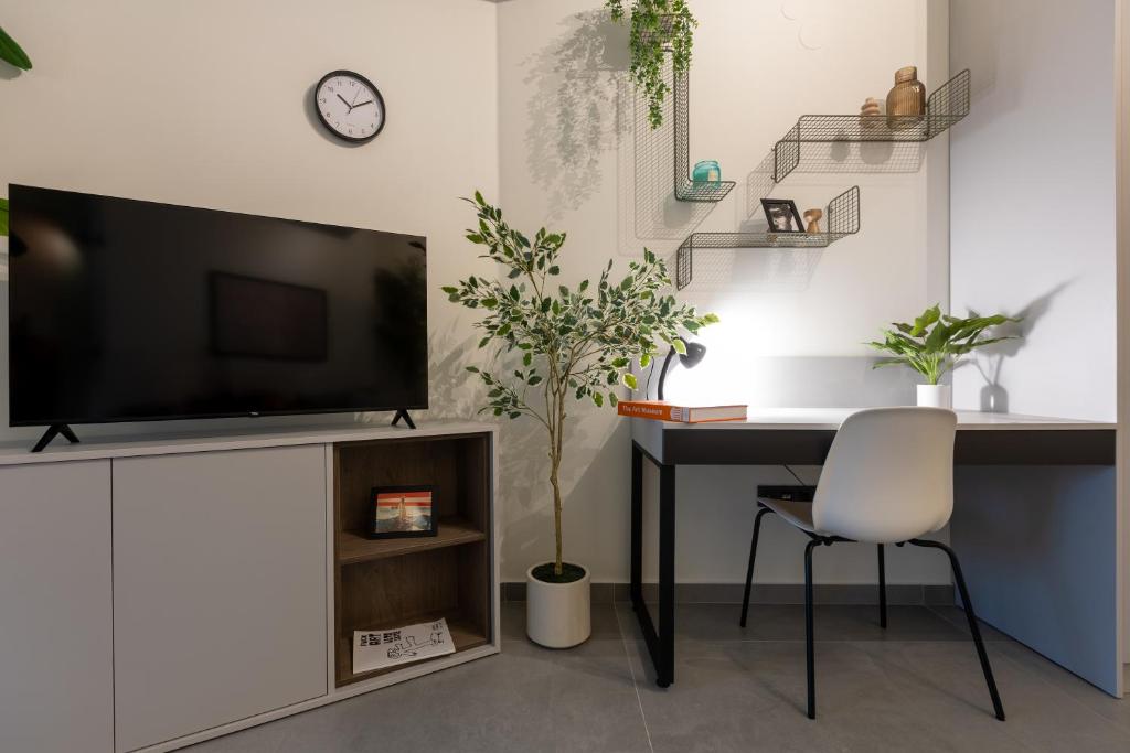Boasting a private entrance, this air-conditioned apartment includes a kitchen, 1 double bed and 1 bathroom with a walk-in shower and a hairdryer. In the fully equipped kitchen, guests will find a stovetop, a refrigerator, kitchenware and a microwave. Featuring a balcony with city views, this apartment also offers a coffee machine and a flat-screen TV. The unit has 1 bed.