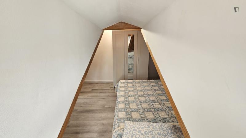 Bed in a comfy twin ensuite bedroom in student-friendly area in Getafe
