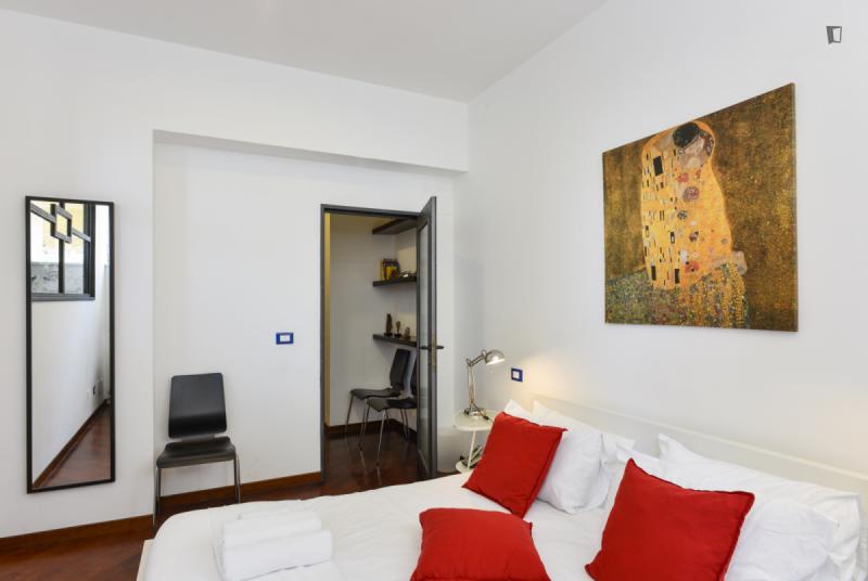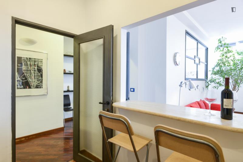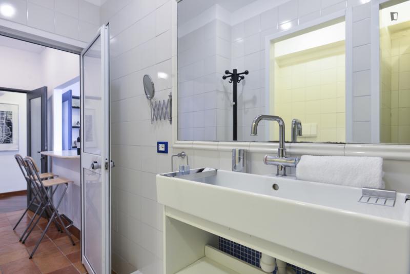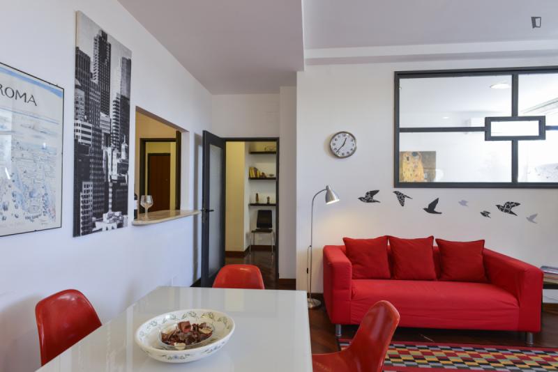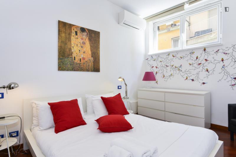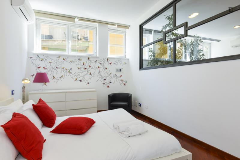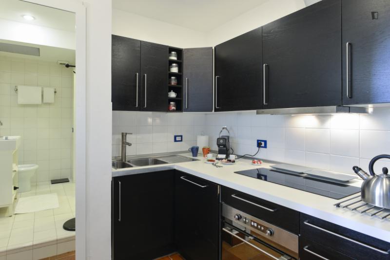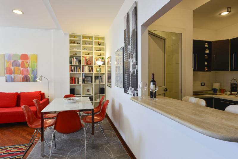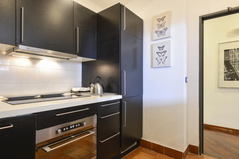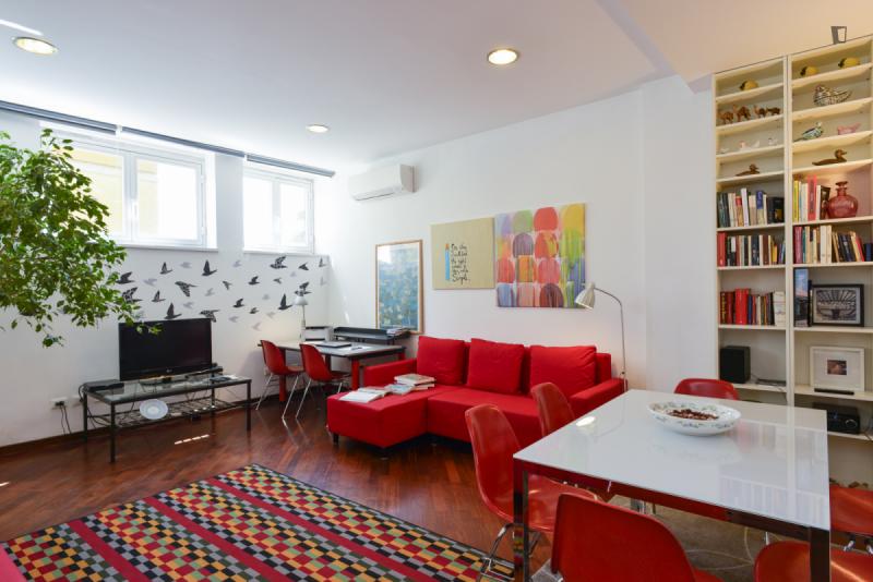 This is the right place for people who want to stay downtown, close to all the attractions, but hate the noise day and night of traffic and crowds. It’s located on a quiet hill above Viale Trastevere, a trendy area with nearby bars, restaurants and historic sites. The atmosphere is quiet and relaxed but close to the vibrant daily life of a non-touristy Trastevere. The apartment has a large living room with a sofa bed, a bedroom with a double bed, a modern bathroom, and a fully equipped kitchen. A silent air conditioning system is ready for summer and winter. The private road 50 m /160 ft up the hill leads to the independent entrance from the private outdoor area. Thus the apartment is on the second floor on the side of the hill. On foot you’ll reach in a few minutes all Universities, Trastevere train station and subway and by bus and tram in a few minutes all sites in the downtown area.