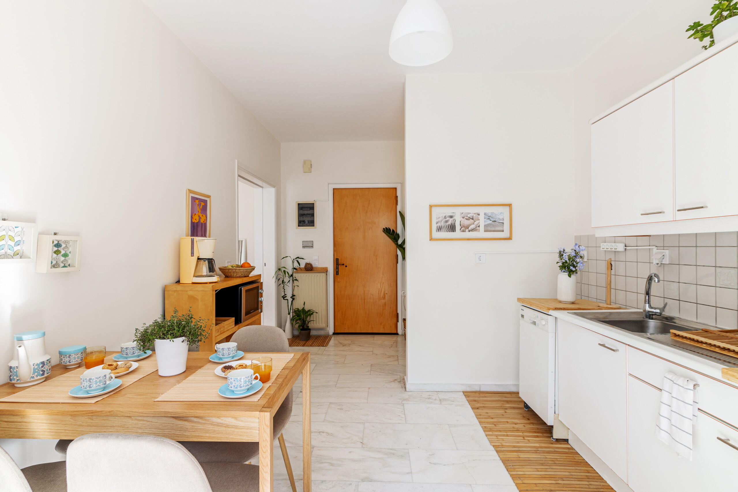 The apartment features one shared renovated comfortable bathroom with an 8kg washine machine and a shared fully equipped large kitchen with a dining table/chairs, family fridge, stove, oven, microwave, dishwasher, small appliances, kitchenware, clothes iron/ironing board, cleaning equippment, dryer rank etc.